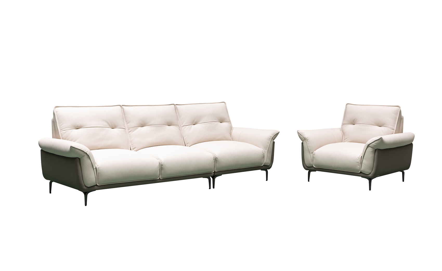 Included in this exquisite arrangement is a spacious sofa paired with a matching armchair, both boasting gently tufted back cushions and softly curved arms for a balanced, sophisticated aesthetic. The design is elevated by slim metal legs that provide a light, airy presence, making it the perfect focal point for upscale interiors. Whether you are hosting a sophisticated gathering or enjoying a quiet evening, these pieces offer effortless luxury.