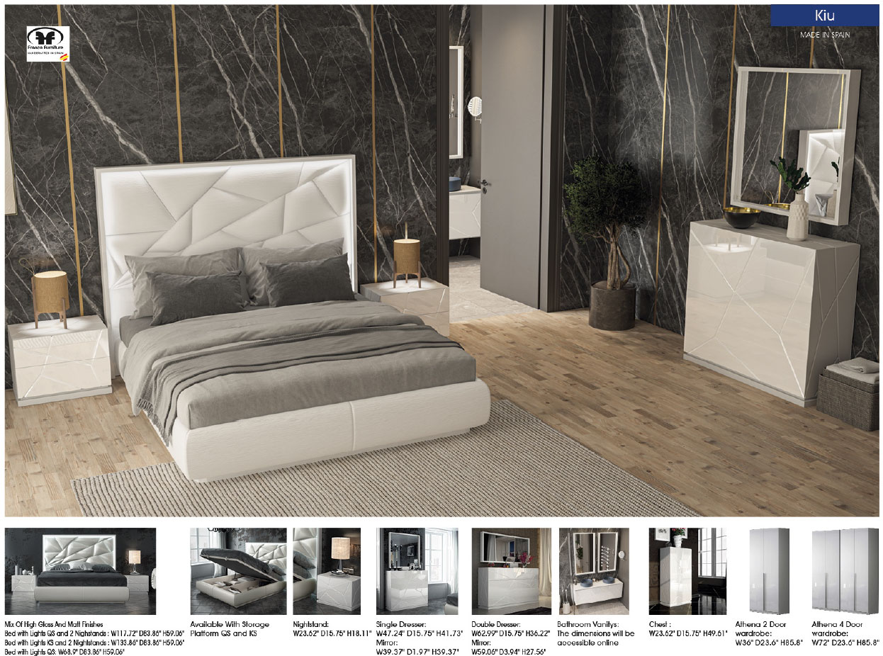 Crafted with precision in Spain, the Kiu Bedroom is more than furniture; it is a lifestyle statement for the discerning homeowner. The harmonious blend of materials and the brilliant white palette evoke a sense of serene, high-end luxury that fits perfectly into any modern American interior. Whether you are looking for a complete suite or a standout focal point, this collection provides the perfect balance of avant-garde style and practical storage, ensuring your private retreat is as functional as it is beautiful.