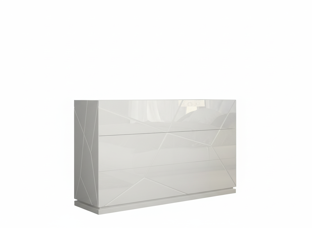 The Kiu Double dresser is a masterpiece of Spanish craftsmanship, meticulously designed to serve as the sophisticated anchor of your contemporary bedroom sanctuary. Part of the exclusive Franco Spain by ESF collection, this piece balances sculptural surfaces with an architectural silhouette to create a bright, luxury atmosphere. Its high-gloss white finish catches the light beautifully, while the matte carcass provides a subtle, striking contrast that emphasizes its modern European roots.