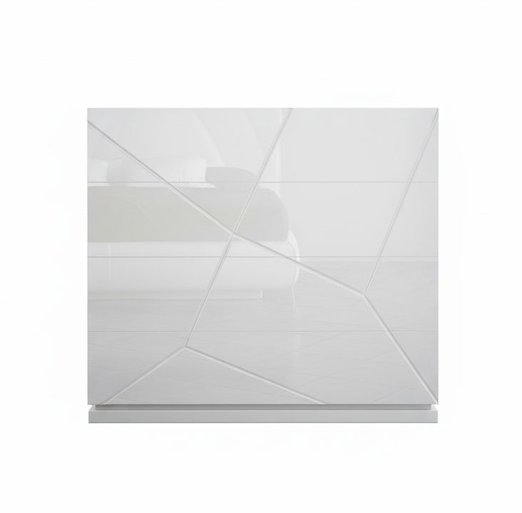 Elevate your bedroom with the Kiu Single dresser, a masterpiece of European craftsmanship from the Franco Spain by ESF collection. This piece serves as a sophisticated anchor for any modern sleeping sanctuary, blending bold contemporary design with striking geometric details. Its sculptural surfaces and high-gloss white finish create a sleek, architectural look that reflects light beautifully, maintaining a bright and luxurious atmosphere.