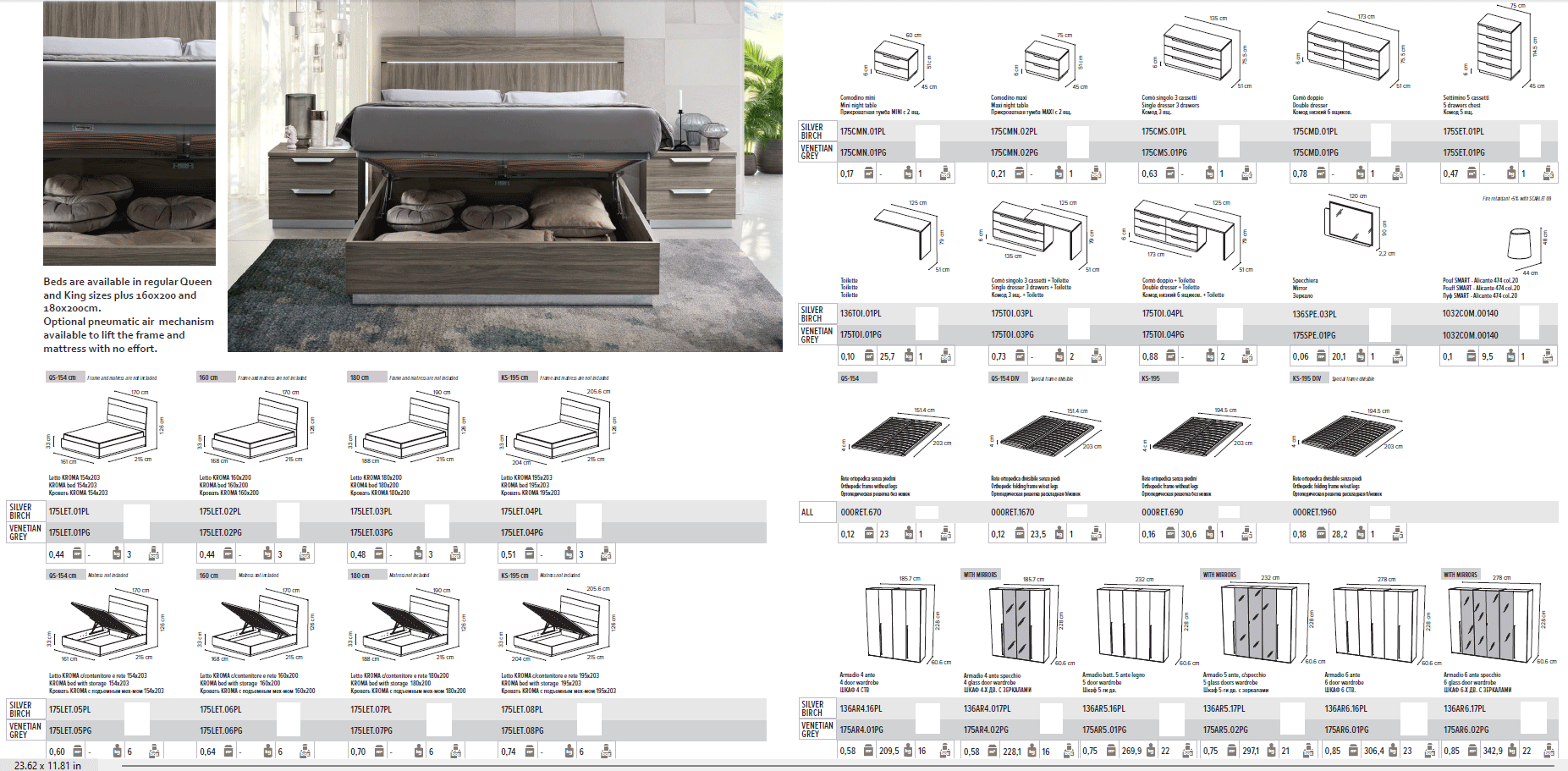 Experience the Kroma Silver Birch Bedroom by Camelgroup – Italy, a masterwork of Italian design that redefines modern bedrooms QS and KS. This collection showcases a stunning silver birch finish, where light and dark grey shades converge to create an elegant contrast. The aesthetic is punctuated by trapezium-shaped handles in a refined brushed aluminum finish, offering a sophisticated touch to your personal sanctuary.
