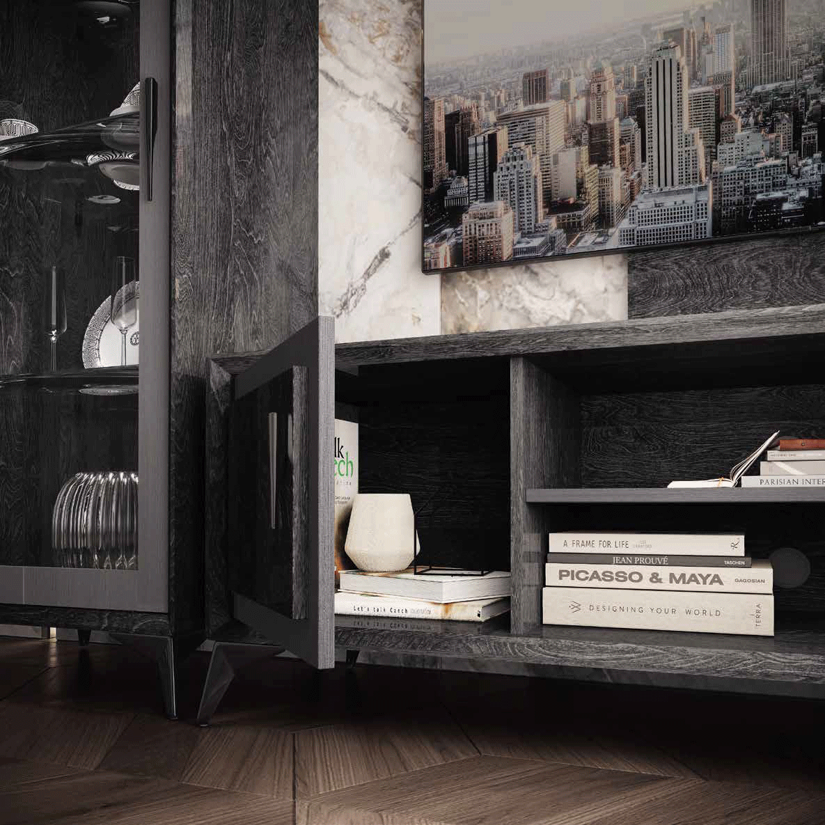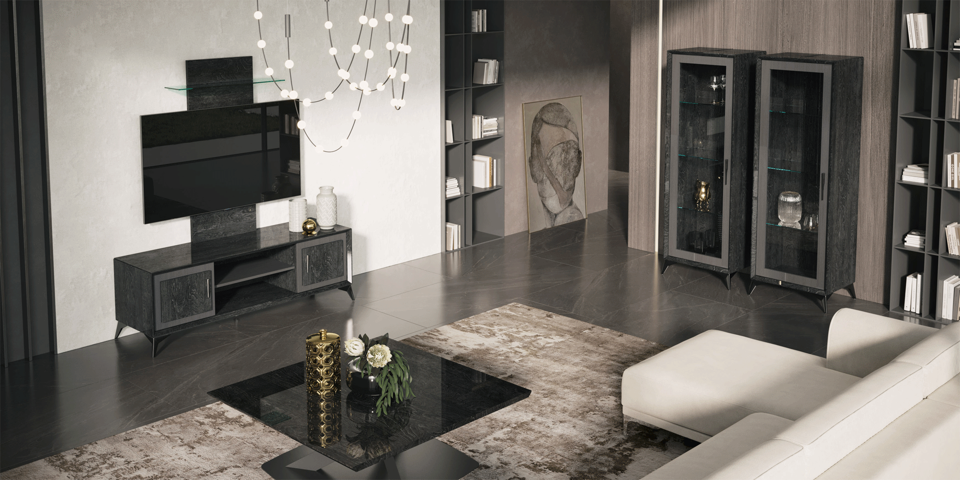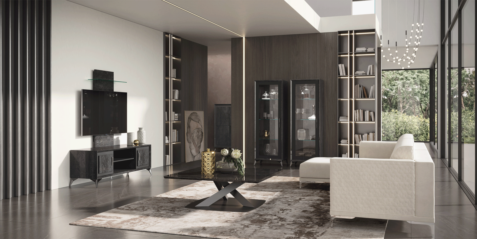 Experience the excellence of Italian craftsmanship with this versatile module. Whether you are hosting a movie night or showcasing your favorite decor, the Krystal TV Cabinet + Wall Panel w/ Led light offers the perfect balance of form and function. Elevate your interior design with this exquisite addition, reflecting a commitment to high-end aesthetics and meticulous attention to detail.