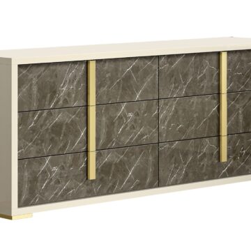 The Kyoto Bedroom Collection by J&M is the newest addition to our Modern Bedroom Category. The Kyoto bedroom features a white high gloss lacquer finish, accented by polished gold. The Headboard features an LED light strip that runs parallel to the gold accent bisecting the headboard horizontally. All case good drawers feature our premium soft close mechanism. The sleek and modern design of the Kyoto collection is sure to complement and accentuate any contemporary home.
