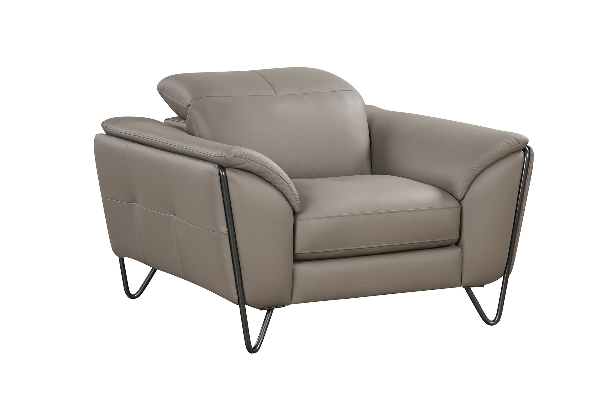 The Lavinia w/ electric recliners set by Nicoletti Sofas brings the essence of Italian artistry directly into your home. This exquisite three-piece collection, including a sofa, loveseat, and armchair, is meticulously crafted in Italy from 100% full top-grain leather. Designed for those who appreciate the finer things, the chic gray Minerva 359-Visone upholstery is paired with sleek, curved metal legs, creating a sophisticated silhouette that serves as the centerpiece of any modern living space.