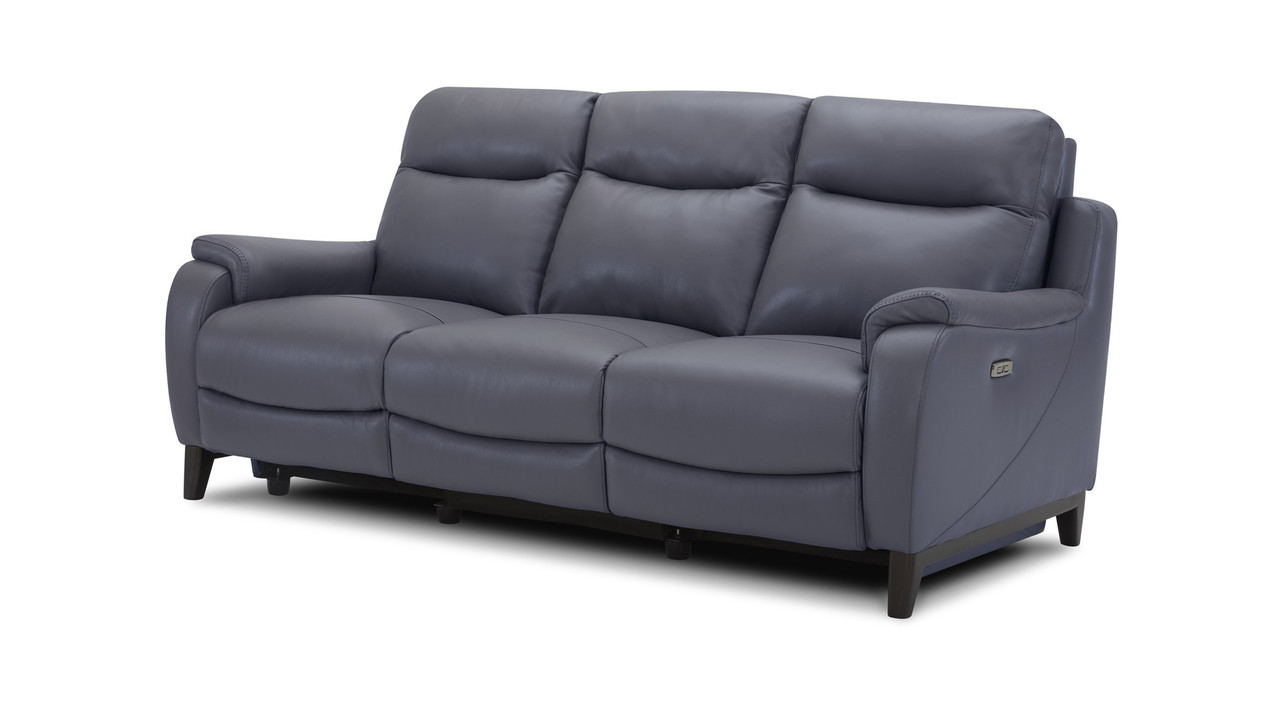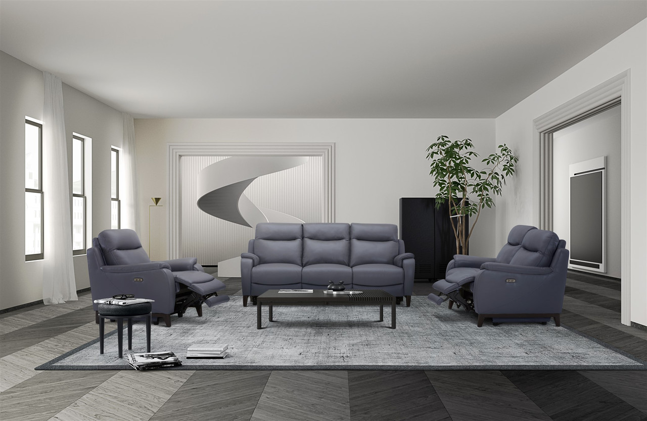 KM.601H Leonard Sofa with Two Power Recliners in Slate Blue NL5100 Leather/Split 83 x 39 x 39.