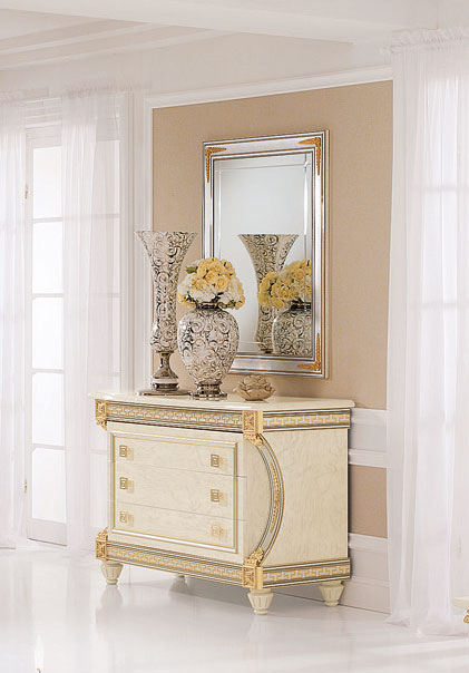 Experience the Liberty mirror for dresser, a masterpiece from the Arredoclassic Italy by ESF collection that brings neoclassical grandeur to your home. This exquisite piece, meticulously crafted in Italy from premium wood veneer and MDF, serves as a radiant focal point with its light, pastel tones. Whether positioned as a standalone accent or placed elegantly above a dresser or console, it infuses any room with a regal atmosphere and timeless charm.
