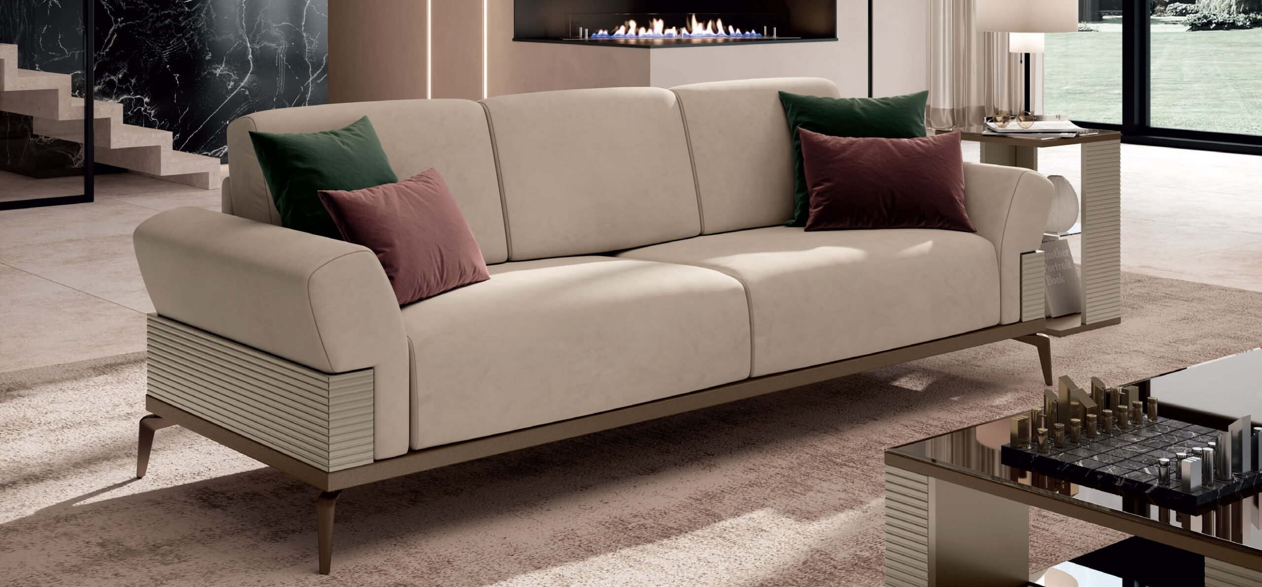With its sleek lines and symmetrical design, this collection is more than just furniture; it is a statement of timeless sophistication. The use of high-quality materials ensures durability while the artistic finishes provide a unique visual identity. Transform your living area into a gallery of modern elegance with the Linea Living room, where functional design meets the pinnacle of luxury living.