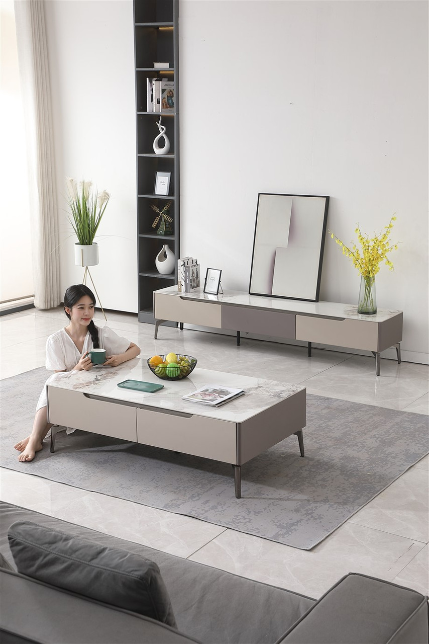 2307 TV Sideboard with Drawers and Storage and Marble Style Porcelain Top 79×15.75*15.75