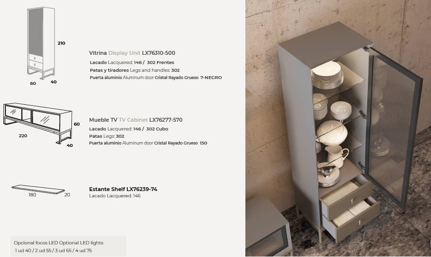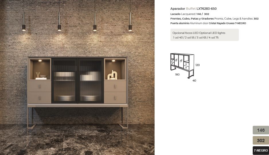The Luxor Dining Comp 2 is a masterclass in modern design, offering a seamless fusion of grace and utility for your living space. As a centerpiece within our Wallunits and Entertainment Centers, this exquisite unit from the Franco Spain by ESF collection is defined by its clean, architectural lines and sophisticated silhouette. Meticulously crafted with special order materials, it features an integrated handle design and a robust metallic base that provides both steadfast stability and a touch of contemporary flair. This piece does more than just house your media; it transforms your room into a curated gallery of Spanish elegance. Whether you are hosting an intimate gathering or enjoying a quiet evening, the Luxor Dining Comp 2 serves as a testament to high-quality craftsmanship and timeless style. Elevate your home’s aesthetic with this stunning module, designed to harmonize perfectly with the most refined interior elements while providing practical, modern functionality.