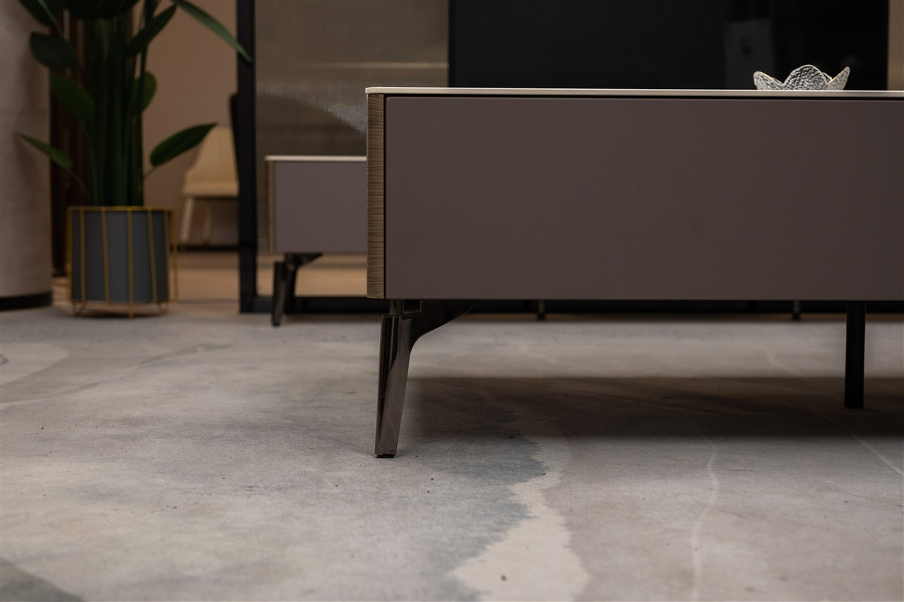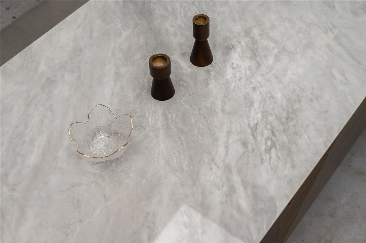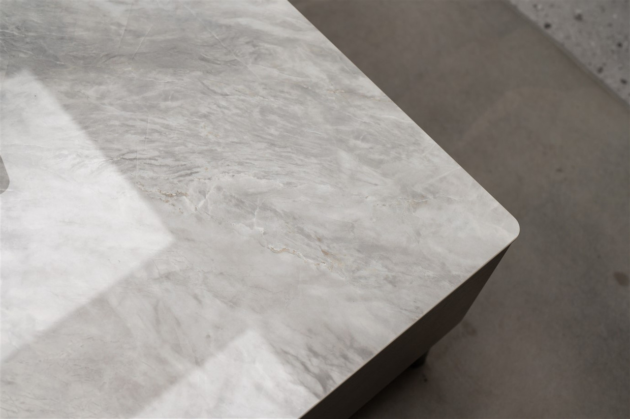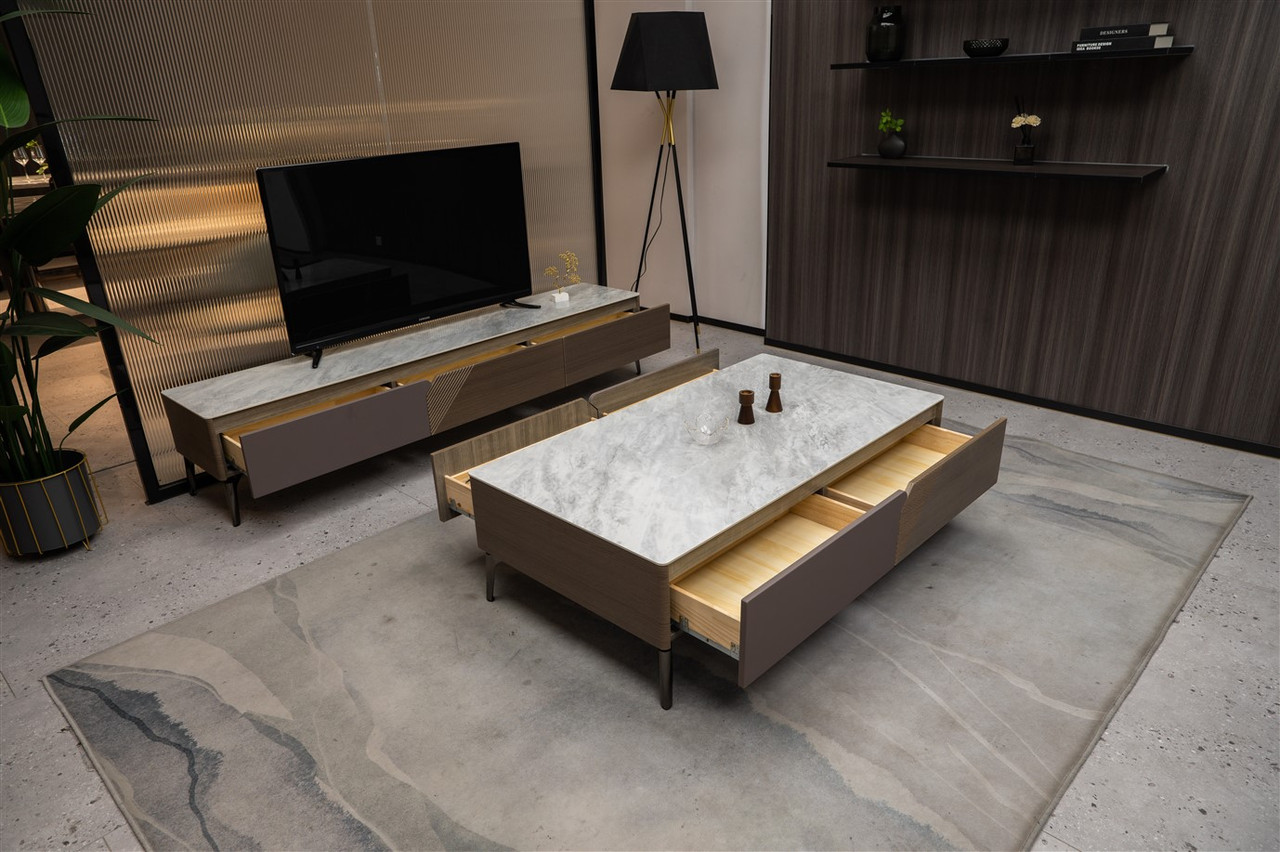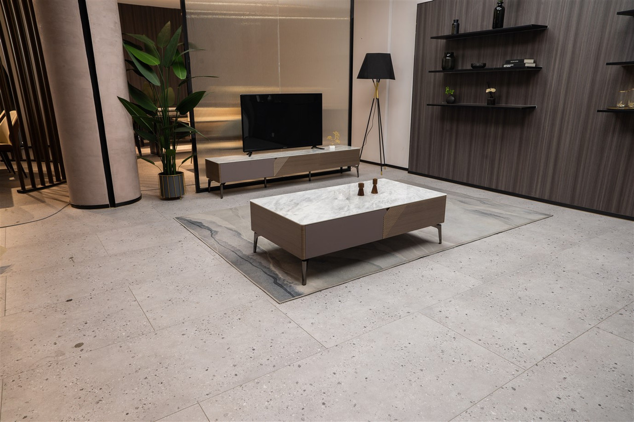 2219 Mia Coffee Table with Carrera Style Porcelain Top with Storage in Walnut and Gray Frame 51x…