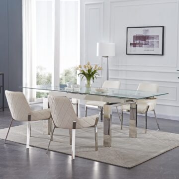 The Milano Leather Dining Chair is an elegant design with a modern contemporary appeal. Upholstered in Genuine Italian leather all around, the Milano Chairs emphasize on durability and style over everything. The Black Metal legs offer a sophisticated classic look for any dining room set. The Milano Leather Chair is available in Chocolate, Light Grey, Tan and White.
