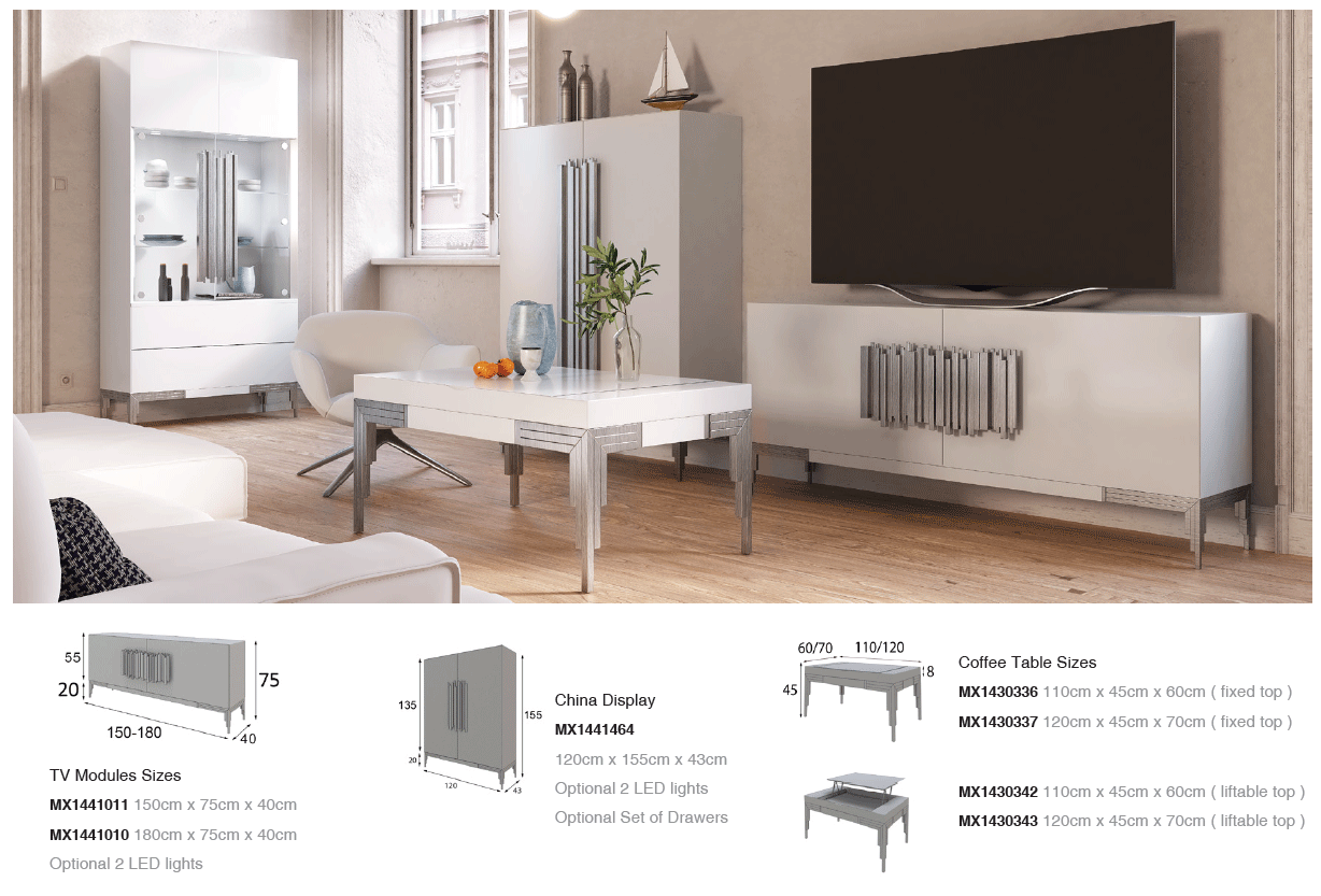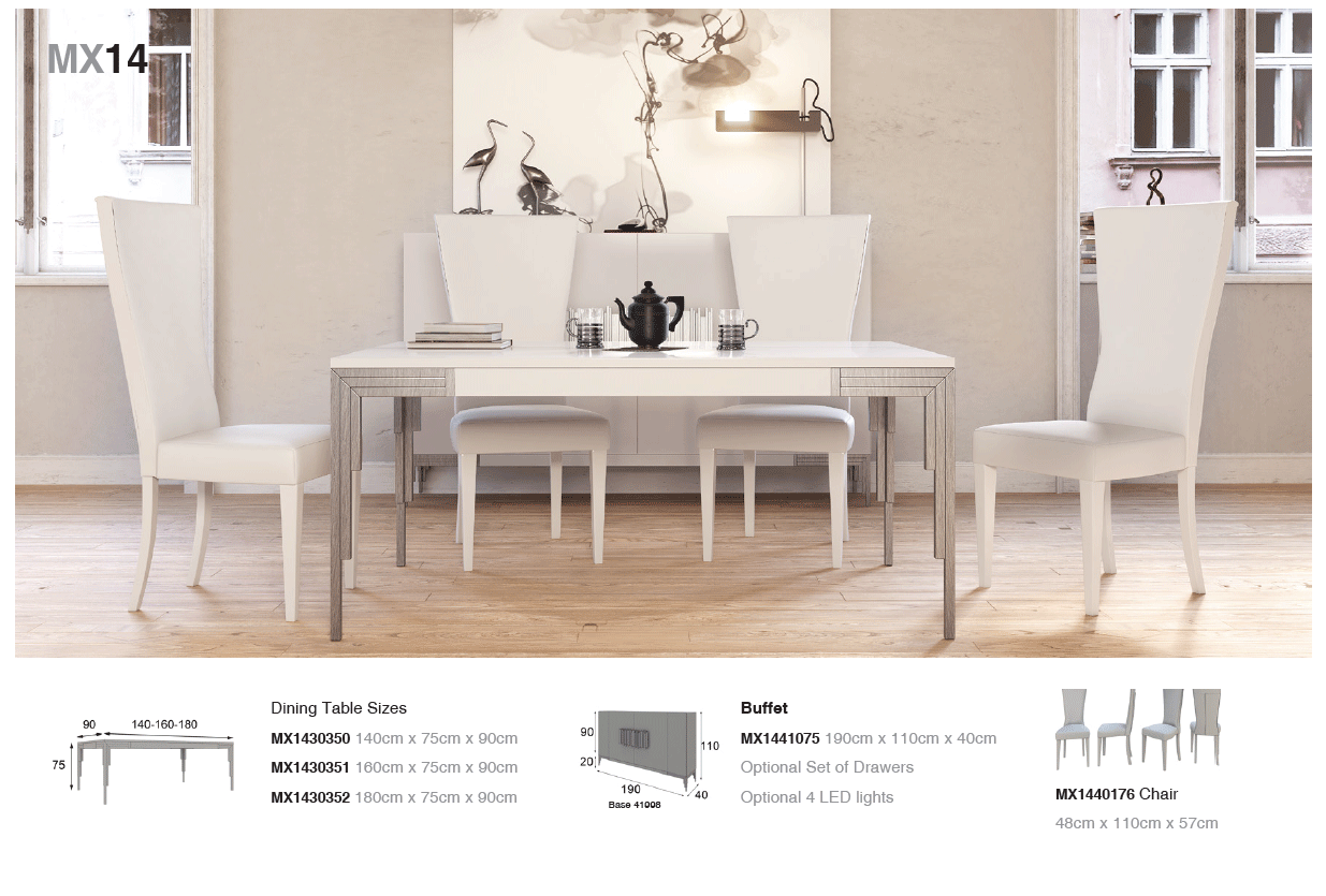 Experience the artistry of Spanish craftsmanship with the MX14, a premier selection within our Modern Dining Room Sets. This exquisite collection from Franco Spain by ESF brings a sophisticated European flair to your home, blending timeless elegance with contemporary utility. Meticulously constructed from high-quality wood veneer and MDF, each piece is designed for durability and style. Homeowners can personalize their space with a variety of matte or metallic lacquer finishes and select from an extensive range of upholstery fabrics at no additional cost. For those seeking a more radiant aesthetic, high-gloss finishes are available to provide a luxurious sheen. Whether you are hosting an intimate dinner or a grand celebration, the MX14 offers the versatility of individual pieces or cohesive TV compositions. Elevate your dining experience with this masterfully crafted furniture that serves as both a functional asset and a stunning focal point in any modern interior.