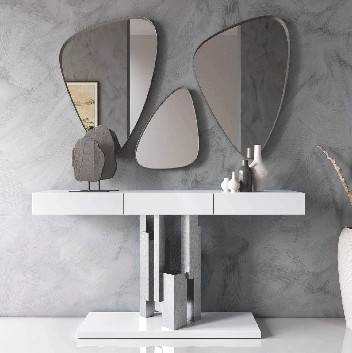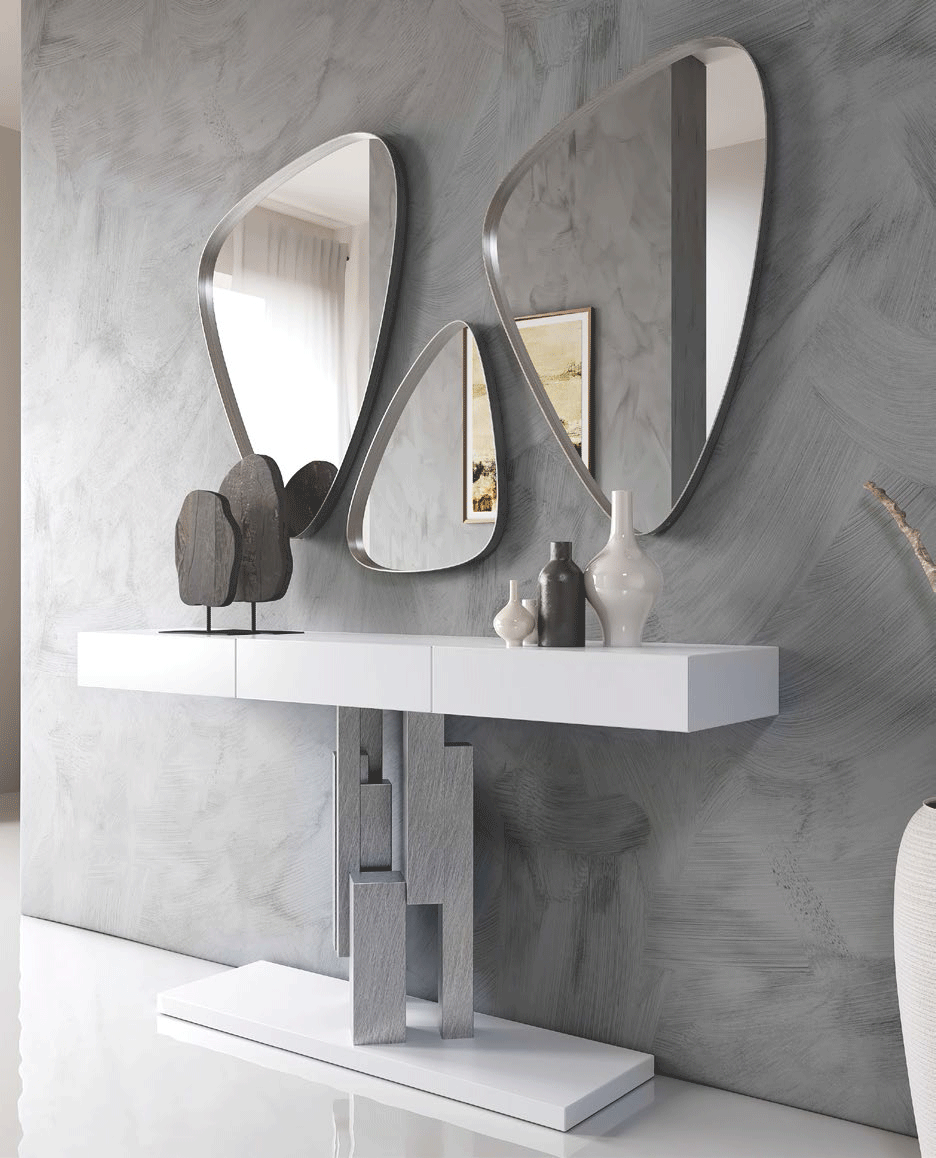 Introducing the MX31, a pinnacle of modern artistry masterfully crafted in Spain. This exquisite piece redefines the standard for Hallway Console tables and Mirrors. Combining the warmth of premium wood veneer with the durability of MDF and special order materials, it serves as a sophisticated anchor for any contemporary entryway.