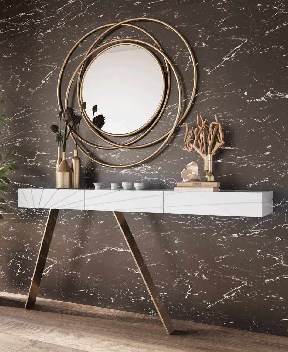 The MX39 modern console table, a centerpiece of the Franco Spain collection by ESF, is a testament to the artistry of Spanish furniture design. Meticulously made in Spain, this piece serves as a sophisticated addition to our Wallunits, Hallway Console tables and Mirrors category. It is crafted with high-quality materials, including rich wood veneer and durable MDF, ensuring that your home’s entryway is graced with both style and substance. Whether you are seeking a minimalist look or a more dramatic flair, this console table offers a refined foundation for your interior decor.