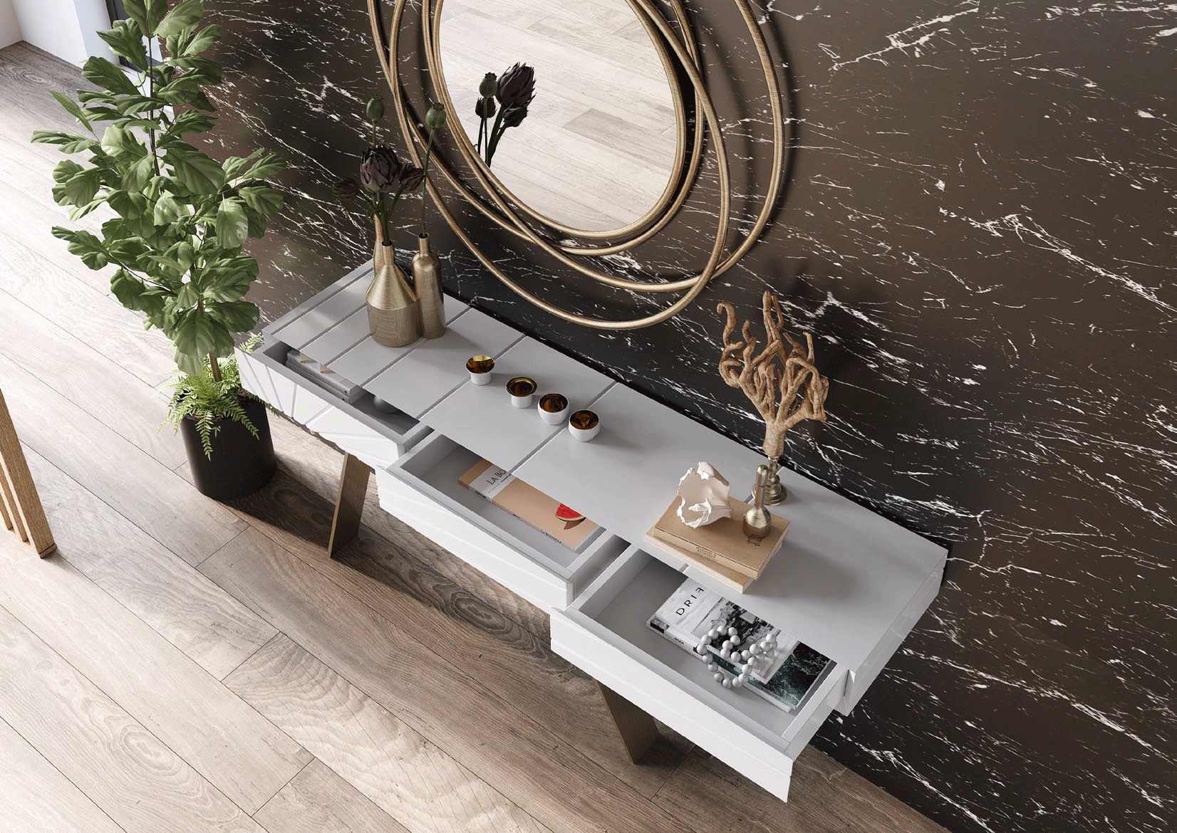 Each MX39 console table reflects the meticulous attention to detail and quality craftsmanship that ESF is known for. While TV compositions are offered as sets, this individual piece stands alone as a striking module of contemporary luxury. The blend of special order materials and traditional wood veneer highlights a commitment to durability and modern elegance. Transform your living space with this exceptional Spanish-made furniture, designed to provide a perfect balance of functional utility and high-end aesthetic appeal.