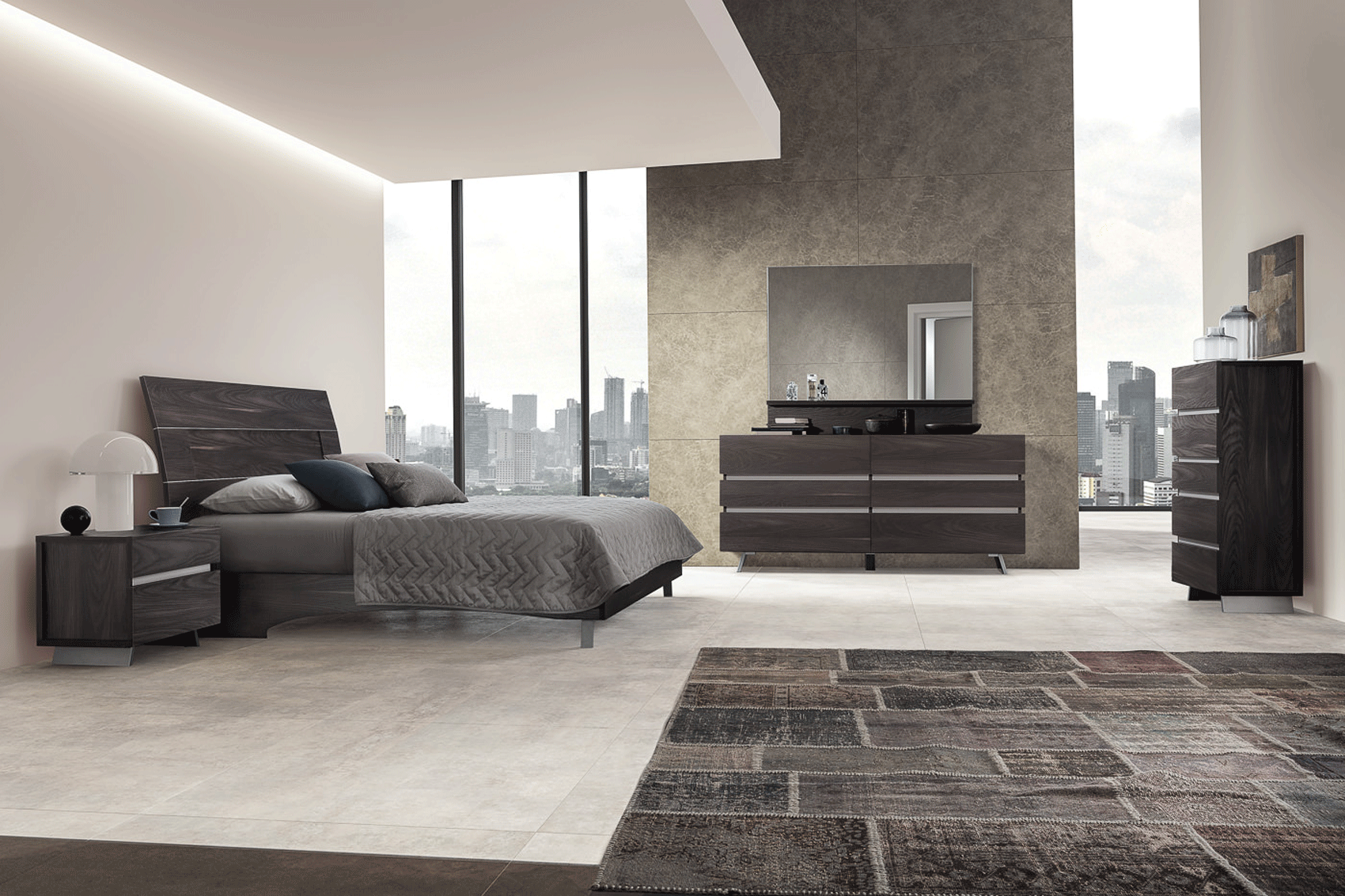 The New Star Comp 2 bedroom set by Status Italy by ESF represents the height of modern European design, meticulously manufactured in Italy to meet the most rigorous international standards. This contemporary collection features a striking Brushed Burnt Oak finish that brings a warm, sophisticated atmosphere to any sleeping sanctuary. Constructed from premium wood-based panels and durable stainless steel, the set is built for longevity and style. The wooden headboard serves as a majestic focal point, while the integrated soft-closing push/pull drawer mechanisms offer a seamless, silent user experience that emphasizes the collection’s high-end engineering.