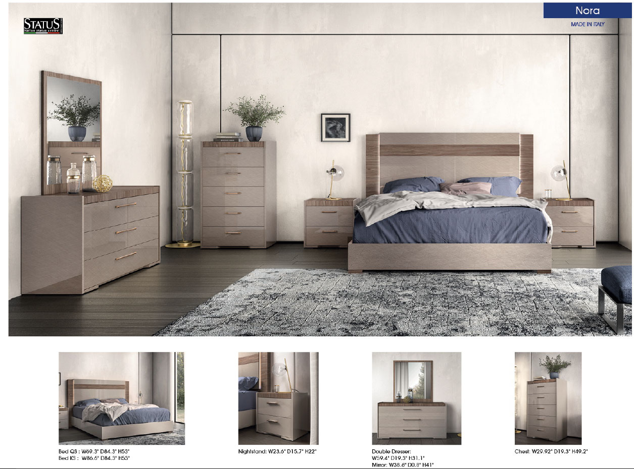 The Nora King size Bed, an exquisite centerpiece from the Status Italy by ESF collection, brings a touch of Italian sophistication to your Bedroom Furniture > Beds. Expertly crafted in Italy using high-quality wood veneer and MDF, this modern platform bed is a testament to superior craftsmanship and enduring style. Its brushed matte walnut finish offers a rich, natural texture that grounds your sleeping space in warmth, while the light wooden headboard provides a striking visual contrast that defines contemporary elegance.