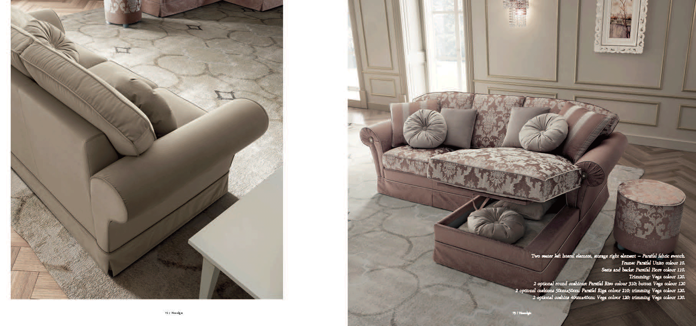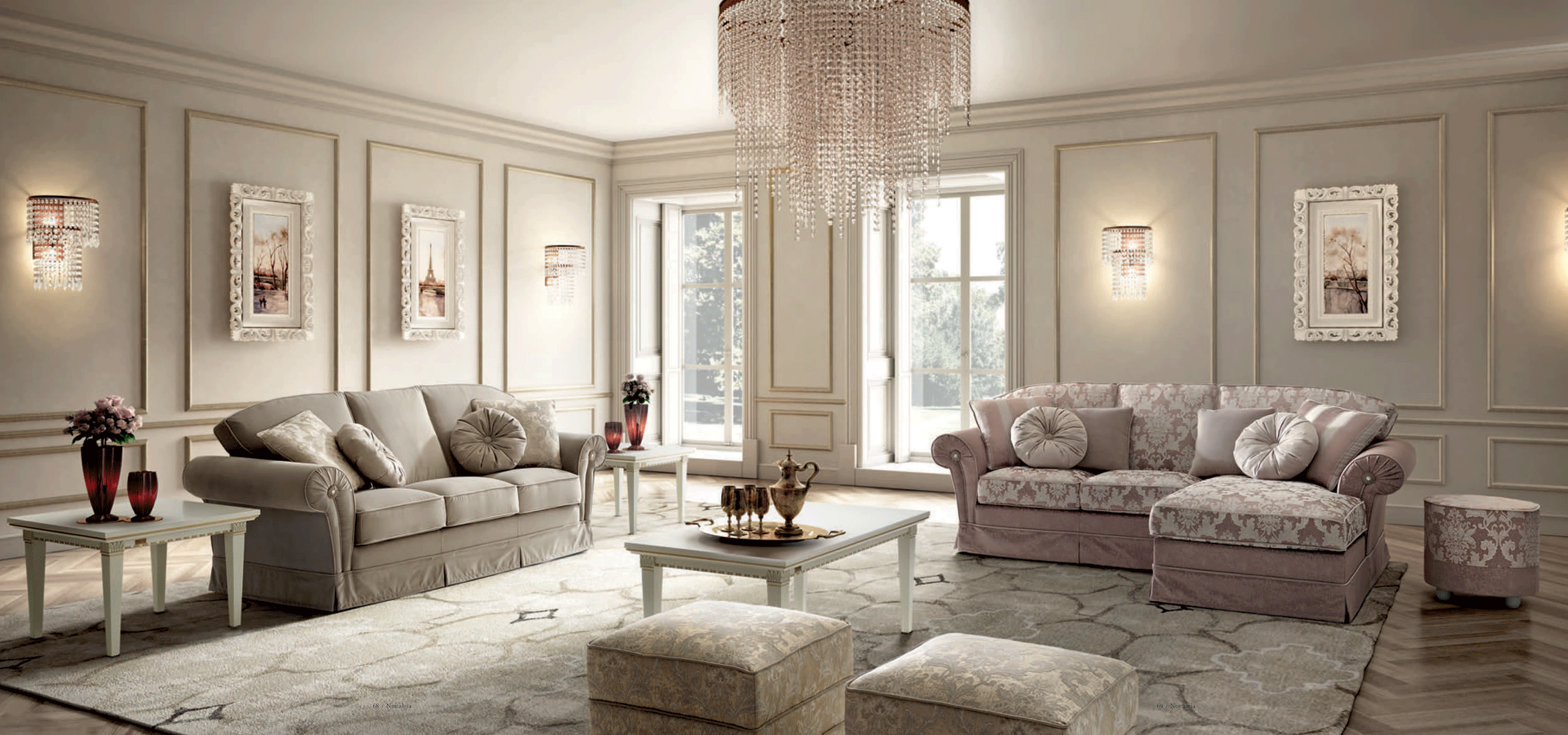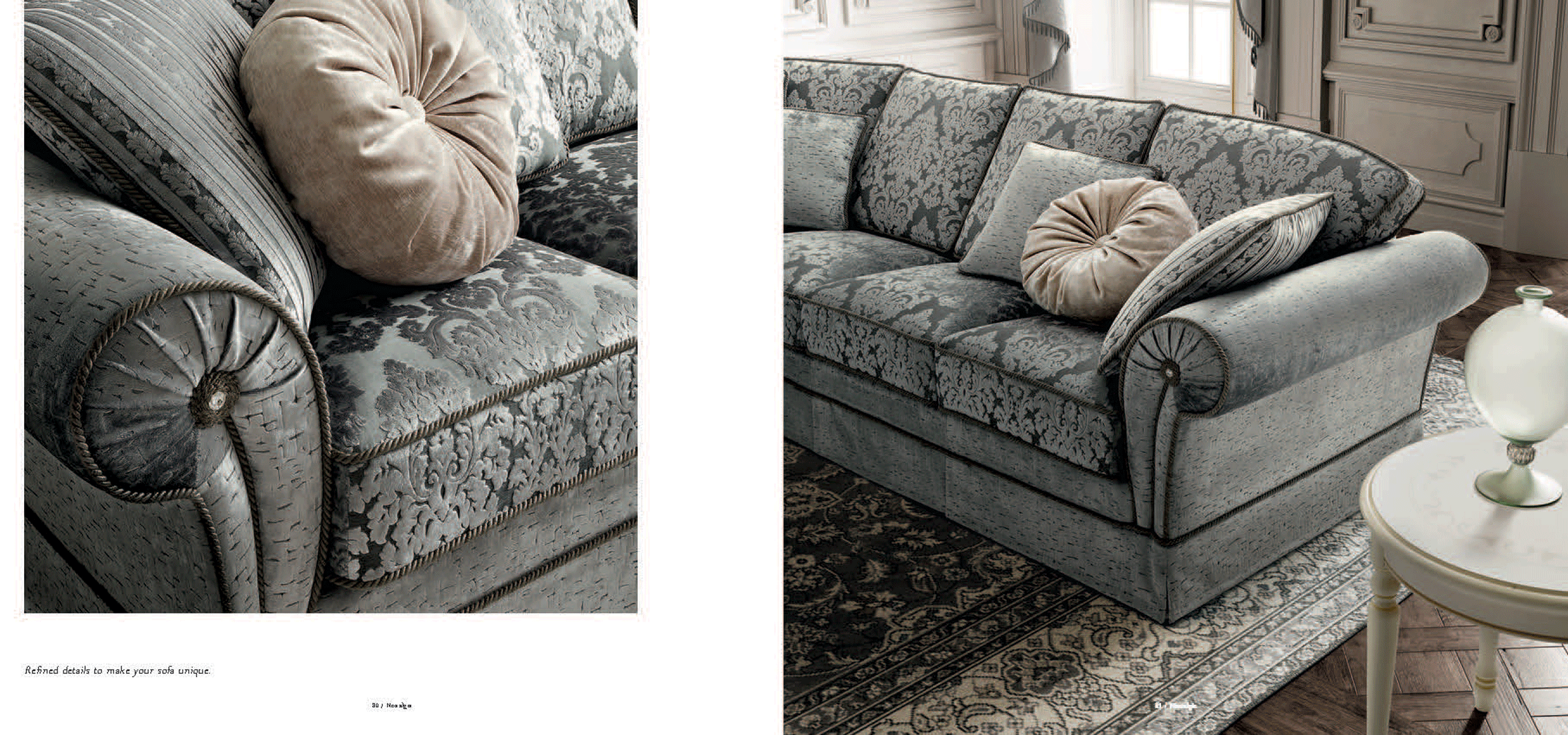 One of the most striking features of this collection is the inclusion of beautiful Swarovski stones, which delicately enhance the armrests. This luxurious detail ensures that the Nostalgia Day Living set remains a conversation piece, blending contemporary trends with a touch of classic opulence. Whether you are looking for Sleepers, Sofas, Loveseats, or Chairs, this collection provides versatile options for your living room furniture needs.