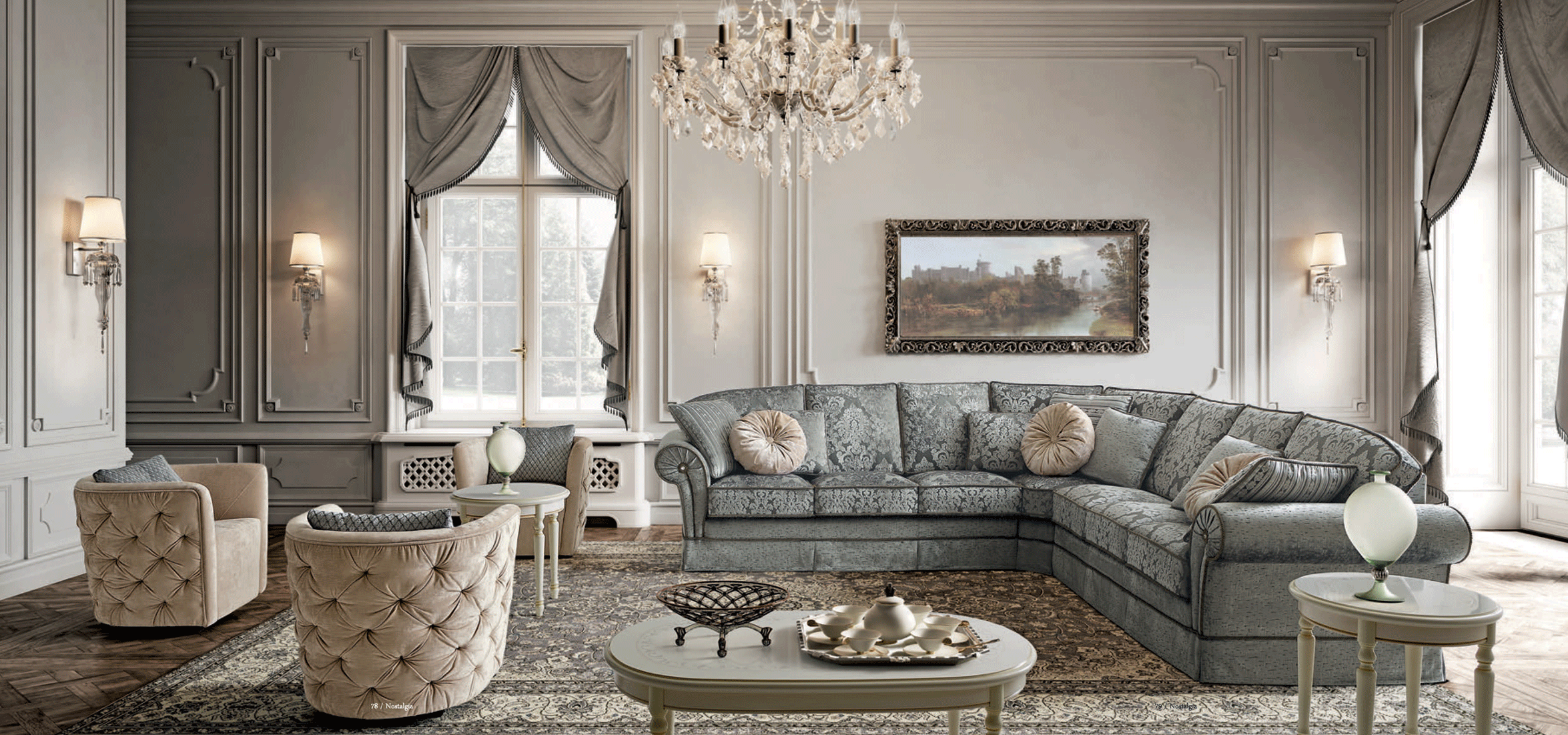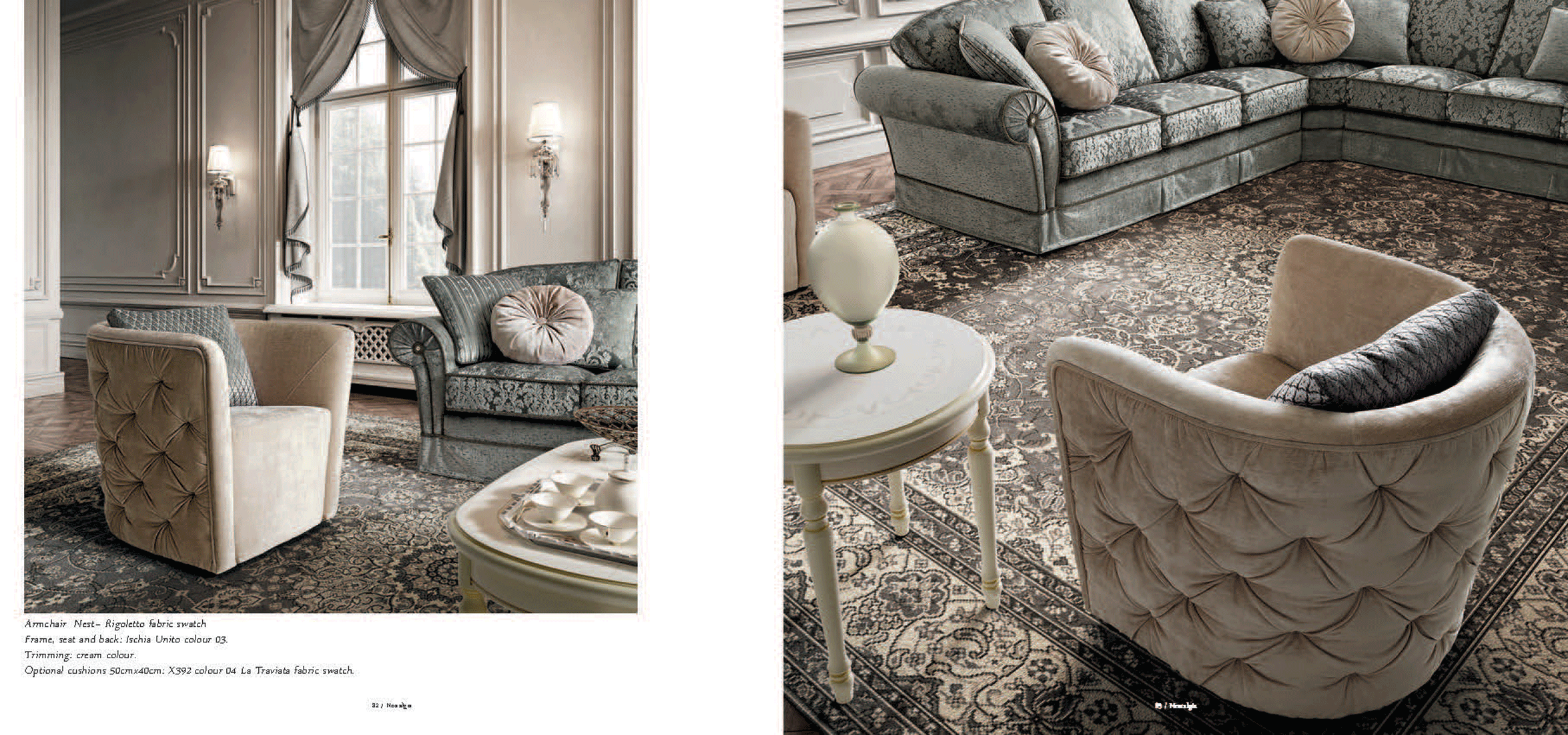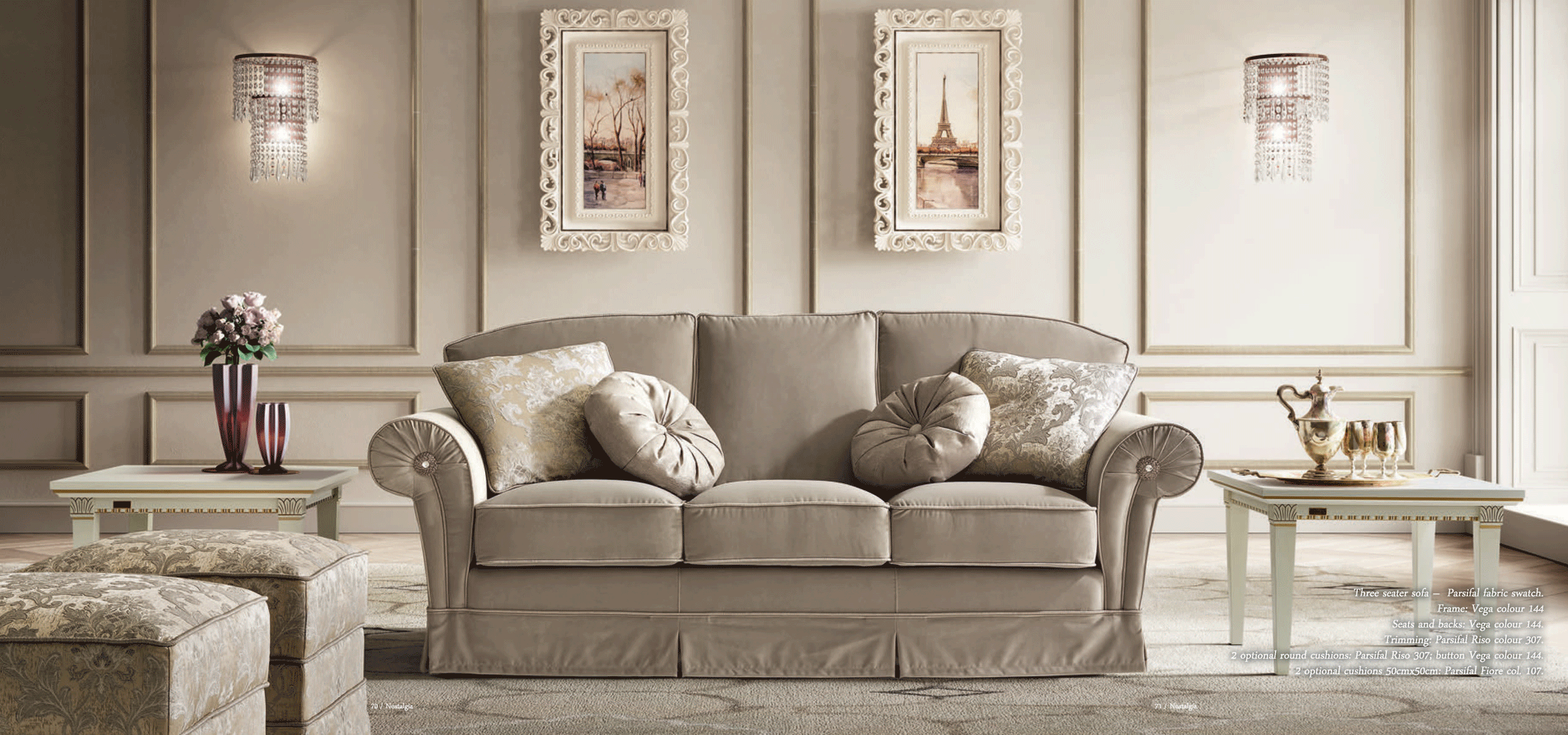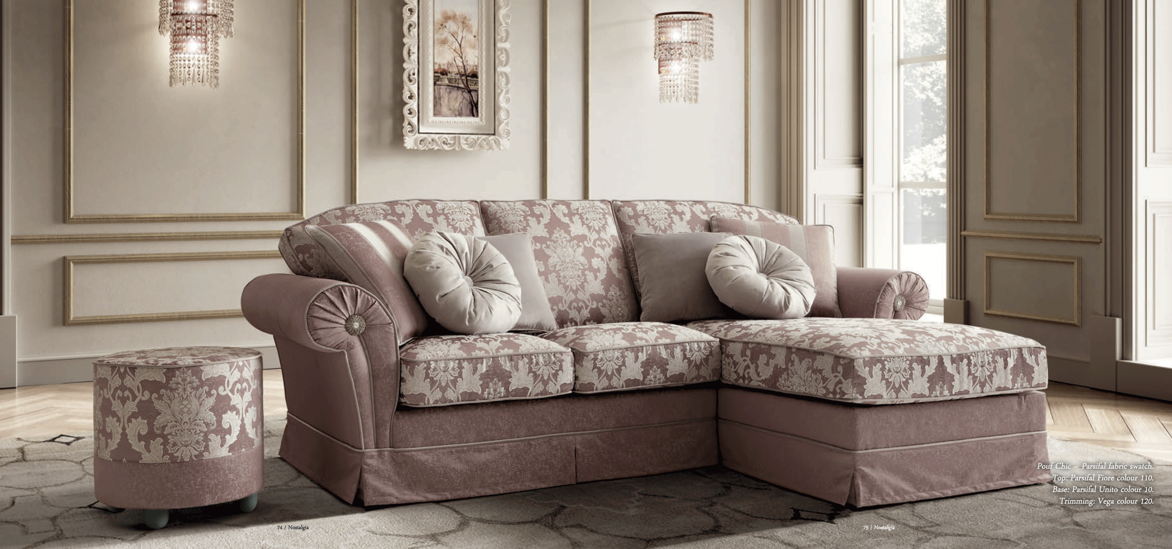 One of the most striking features of this collection is the inclusion of beautiful Swarovski stones, which delicately enhance the armrests. This luxurious detail ensures that the Nostalgia Day Living set remains a conversation piece, blending contemporary trends with a touch of classic opulence. Whether you are looking for Sleepers, Sofas, Loveseats, or Chairs, this collection provides versatile options for your living room furniture needs.