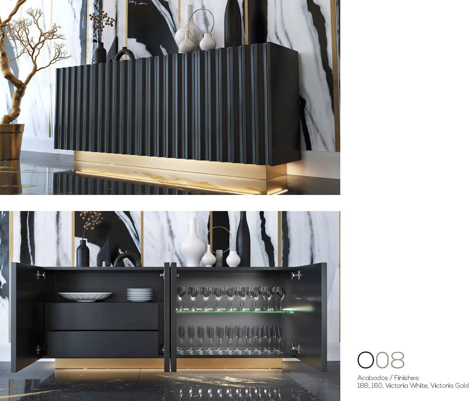 The O08 Orion Dining set by Franco Spain by ESF is a masterwork of modern design, offering a sophisticated centerpiece for your home. This exquisite Modern Dining Room Set is meticulously crafted to blend avant-garde aesthetics with daily functionality. Each piece reflects the pinnacle of Spanish artistry, featuring a refined palette of 188 mate and 160 mate finishes, beautifully accented by Victoria White and Victoria Gold details. This special order product is constructed from premium materials, ensuring a luxurious feel and lasting durability. Whether you are hosting an intimate dinner or a grand celebration, the O08 Orion Dining collection transforms your dining area into an elegant gallery of style and comfort. With its balanced volumes and striking color harmony, this set provides a unique atmosphere that resonates with refined taste. Elevate your interior with this versatile collection, designed to harmonize perfectly with the most sophisticated modern living spaces.