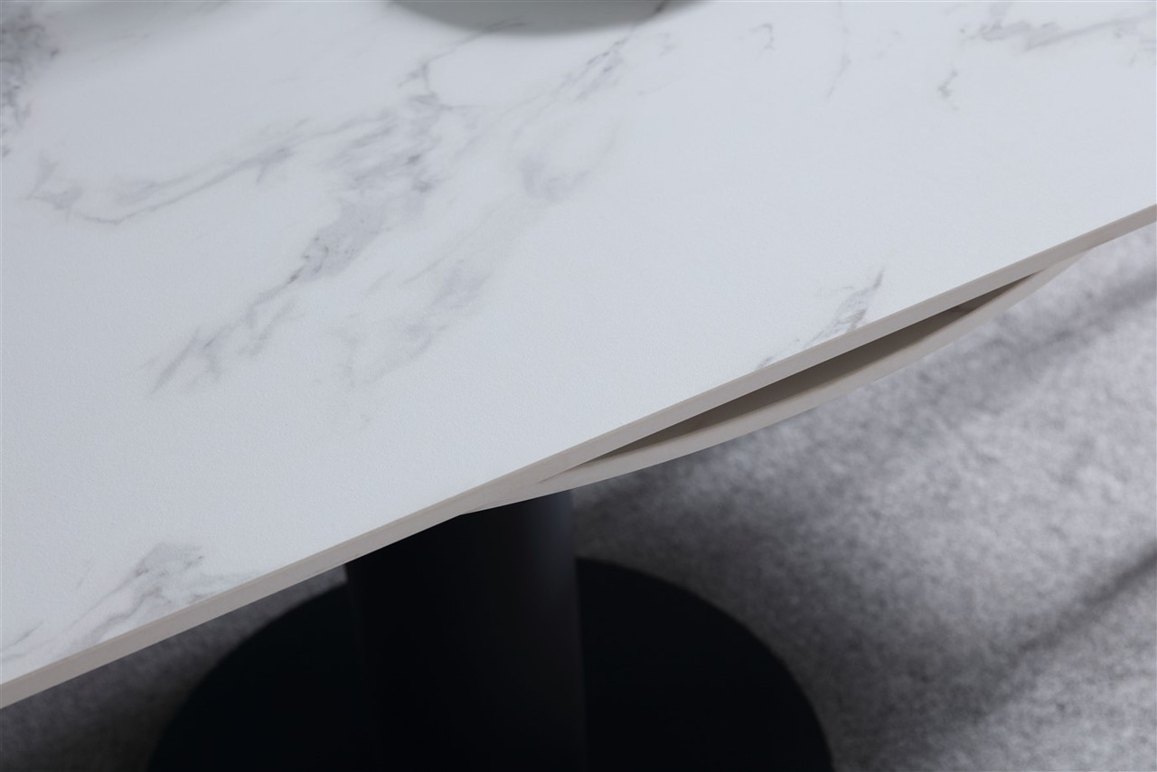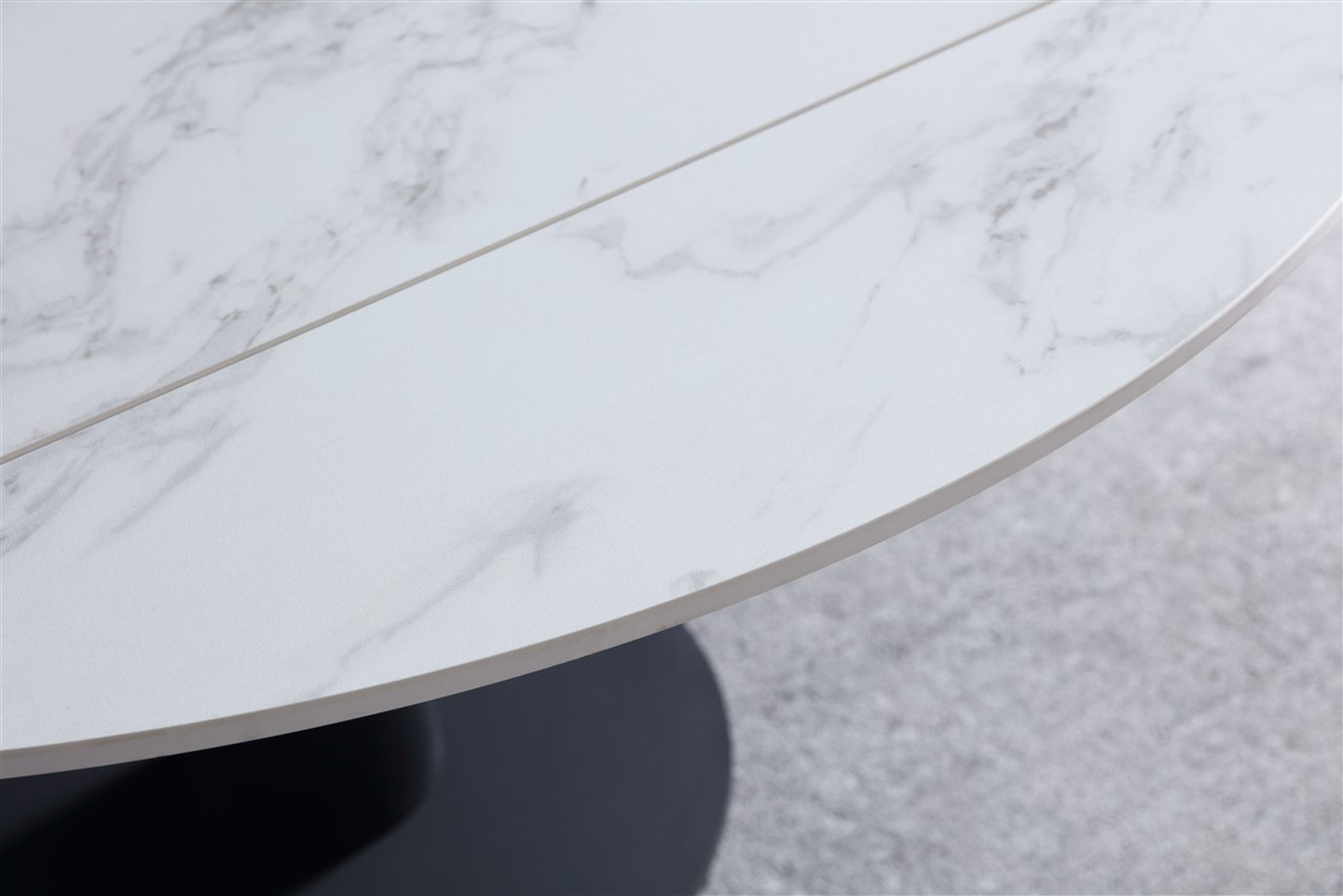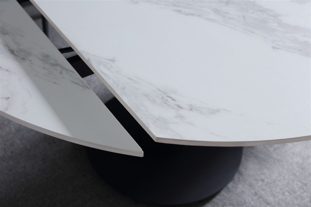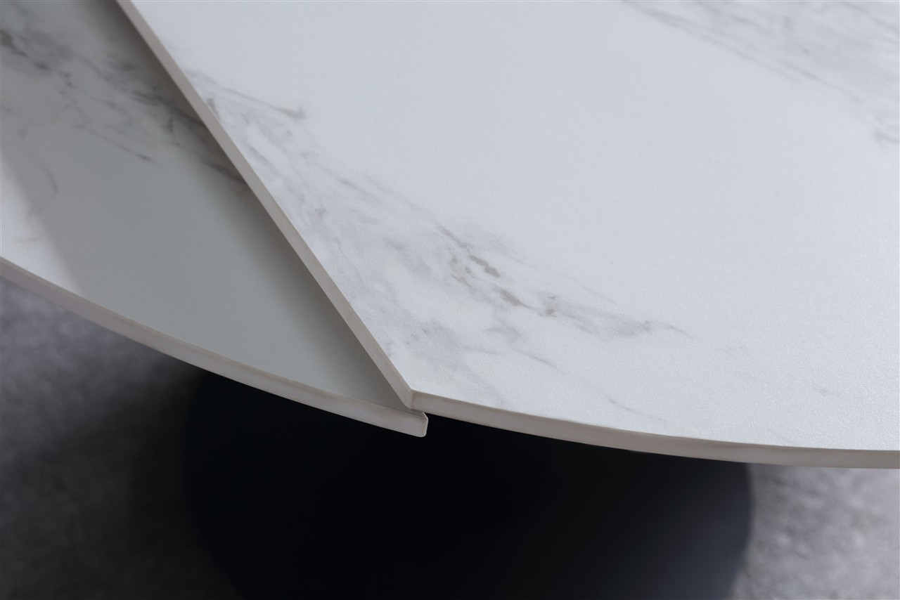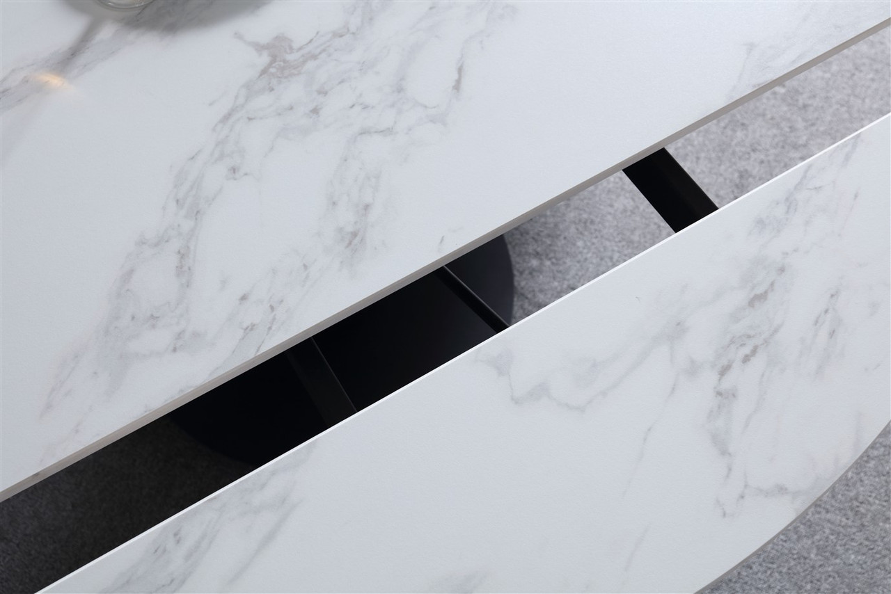 Rotating Extendable Dining Table 53″ x 33.5″ with Carrera Style Porcelain Top