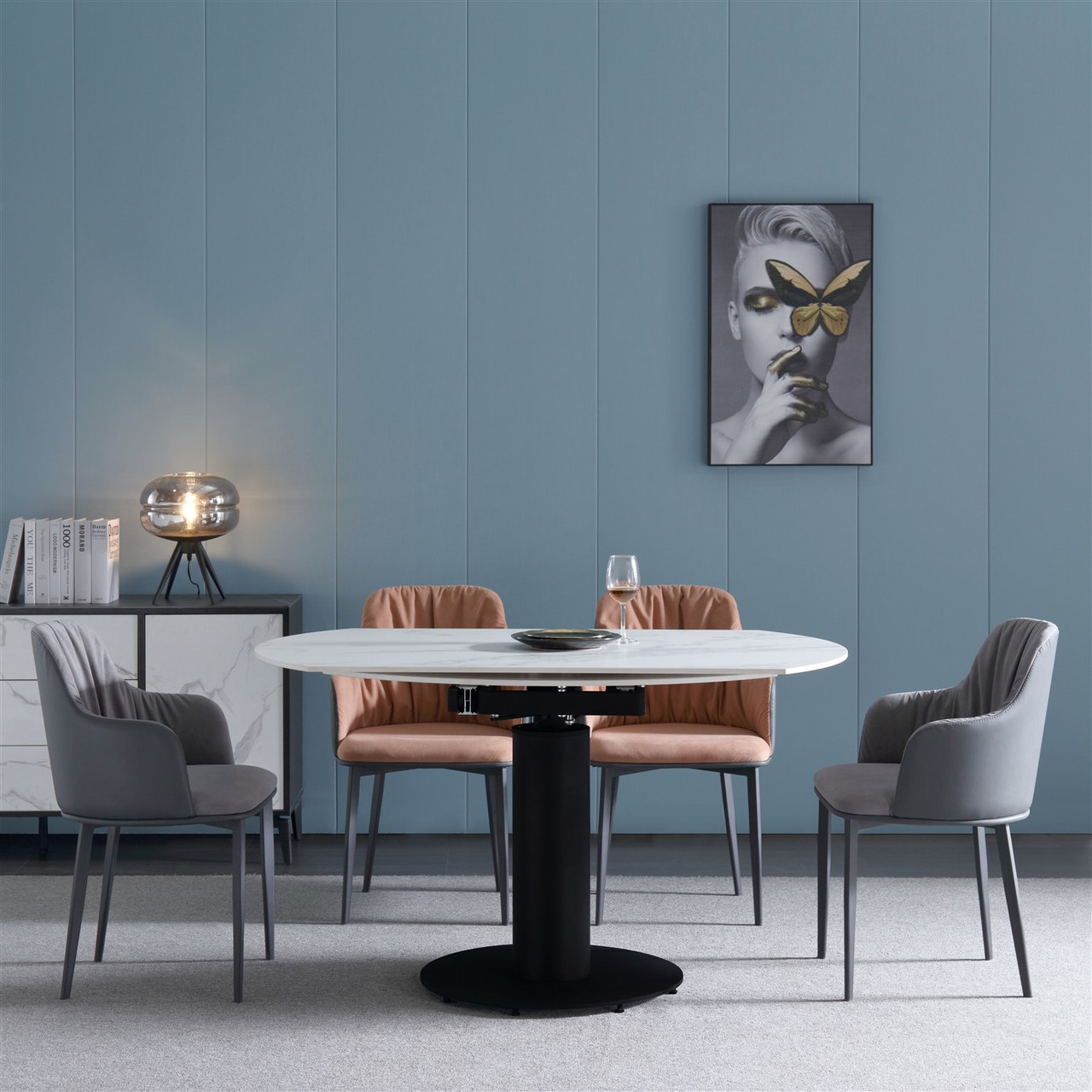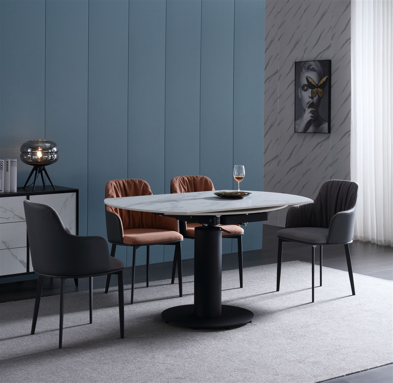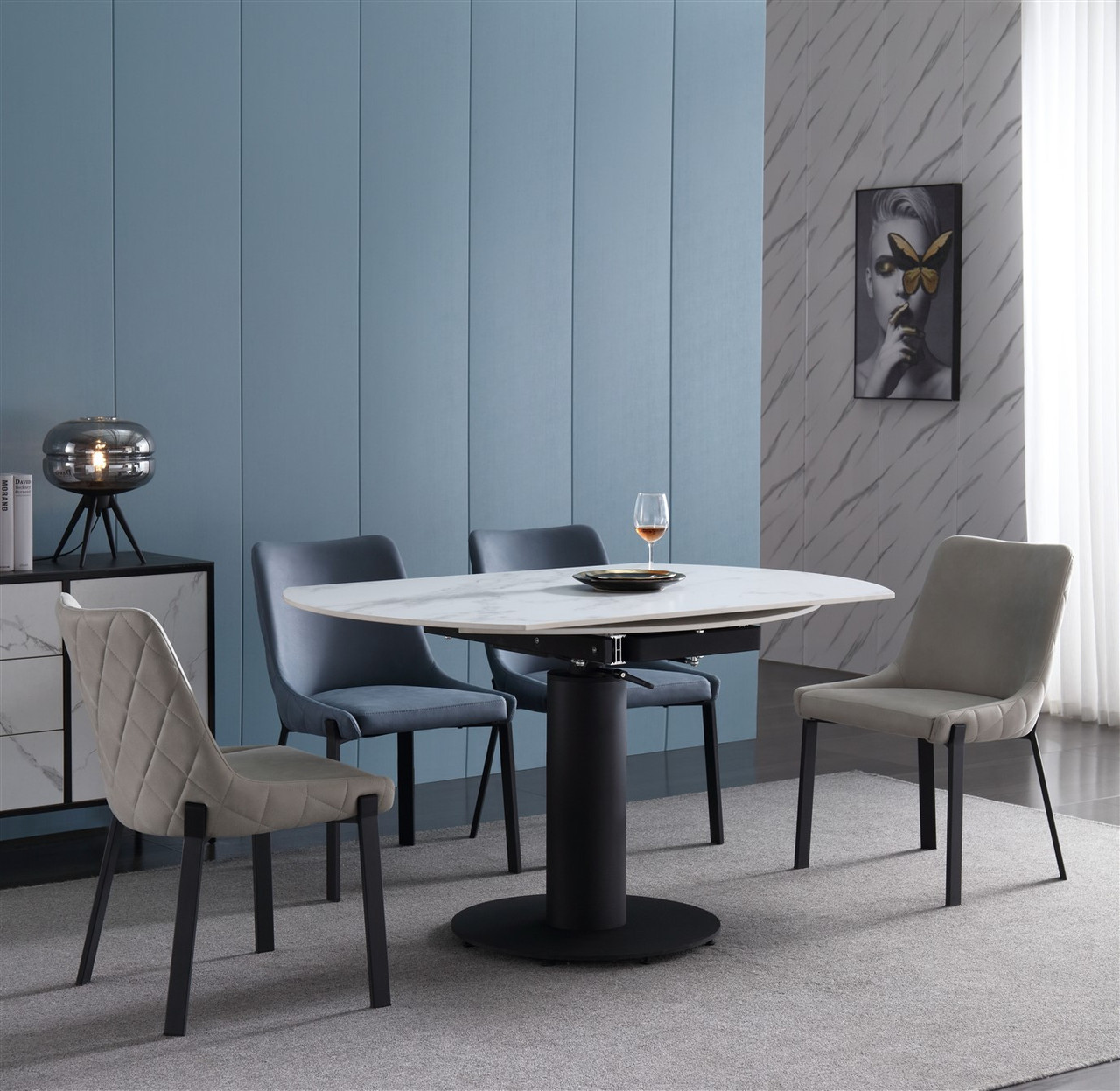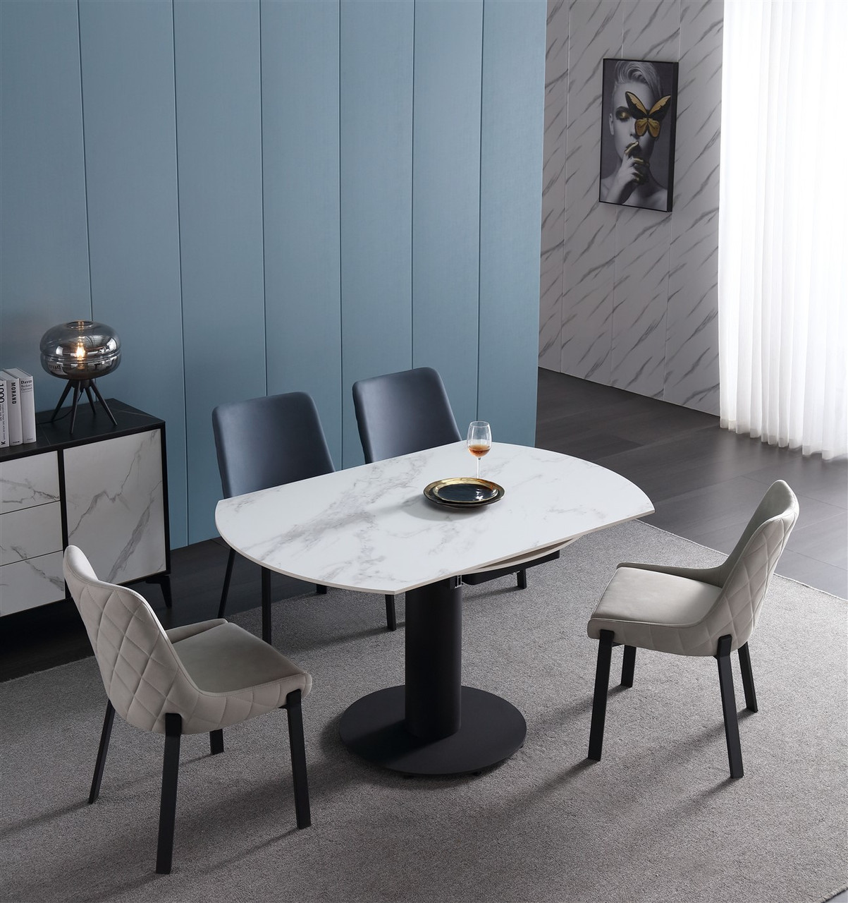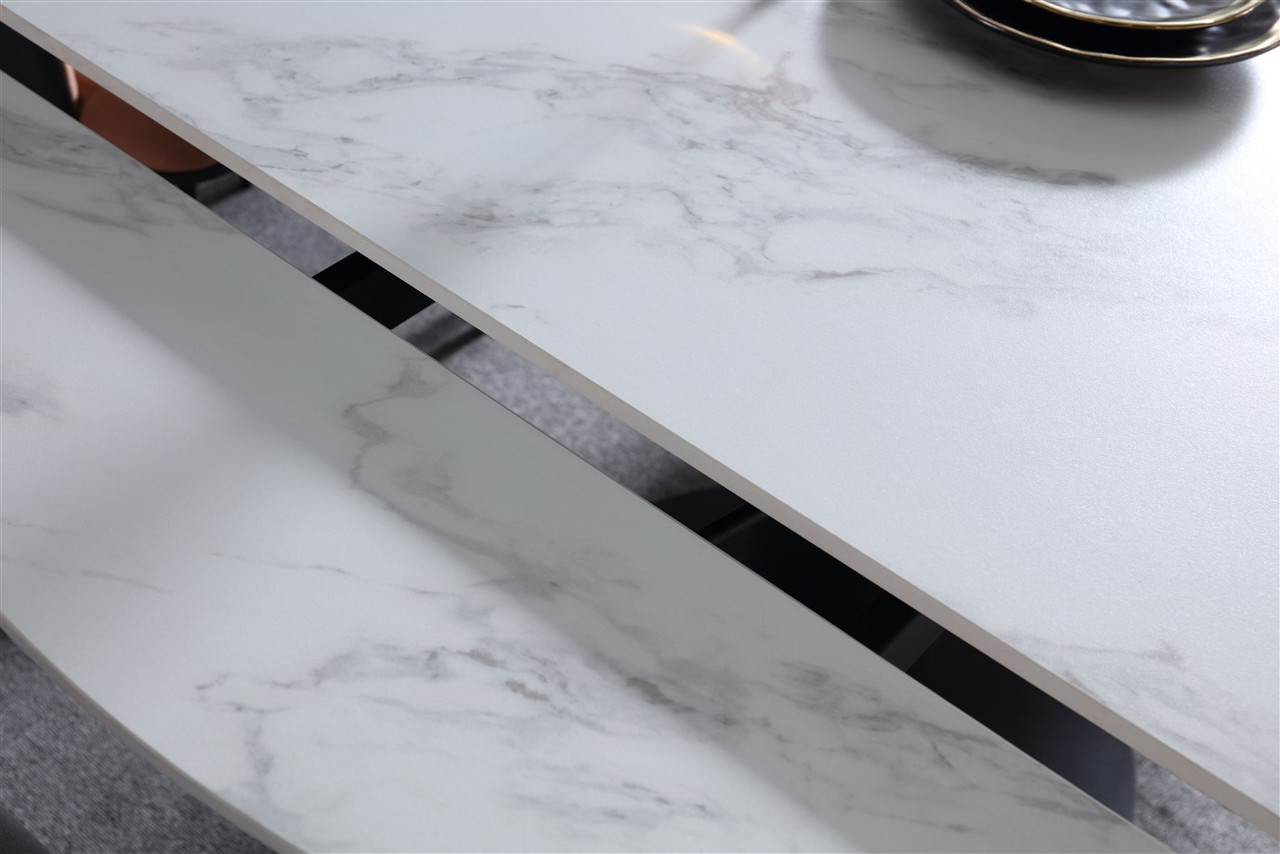 Rotating Extendable Dining Table 53″ x 33.5″ with Carrera Style Porcelain Top