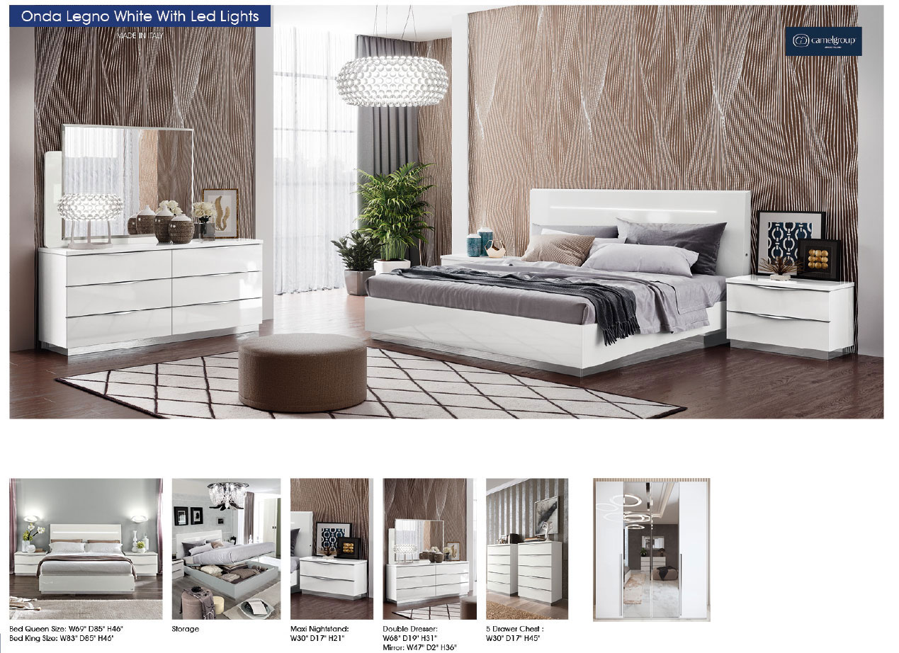 Elevate your home with this sophisticated selection from our Modern Bedrooms QS and KS category, where minimalist lines meet unmatched functionality. A standout feature is the integrated dimmer touch sensor built into the bed, allowing you to create the perfect ambiance with a simple touch. Whether you are looking to enhance visual space or bring a calm focal point to your sanctuary, this Italian-made collection provides an elegant arrangement that harmonizes style with everyday utility. Every detail, from the sleek headboard to the coordinated storage pieces, reflects a commitment to quality and modern aesthetic.