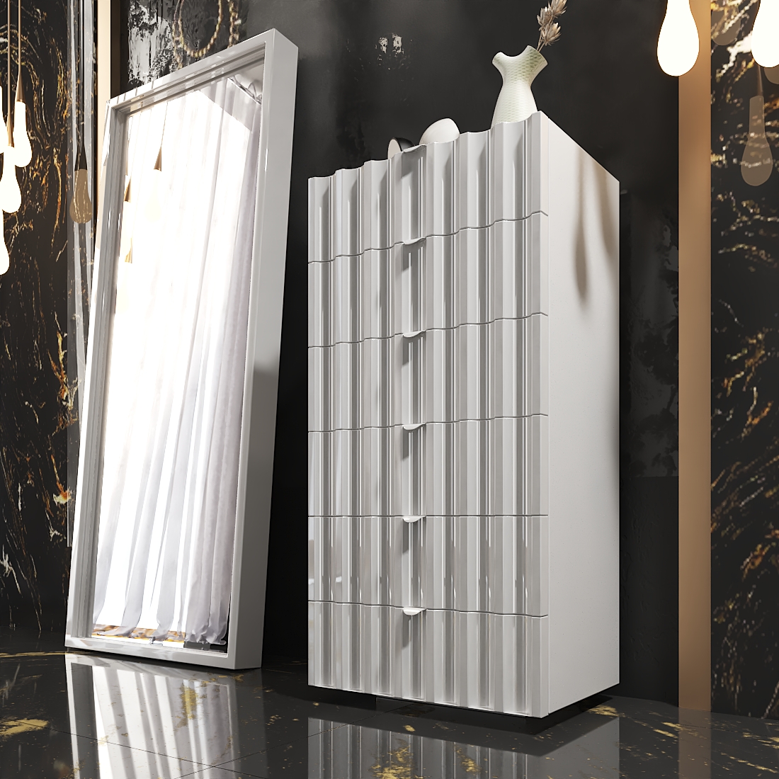 Experience the Orion Bedroom, a masterful European collection crafted in Spain by Franco Spain for ESF. This modern bedroom set defines futuristic elegance with its crisp white glossy finish and an incredibly beautiful pattern that gracefully adorns the eco-leather headboard and matching furniture surfaces. Designed to transform your sleeping sanctuary into a gallery of contemporary style, the Orion collection offers a sophisticated aesthetic that harmonizes perfectly with the most refined home interiors.