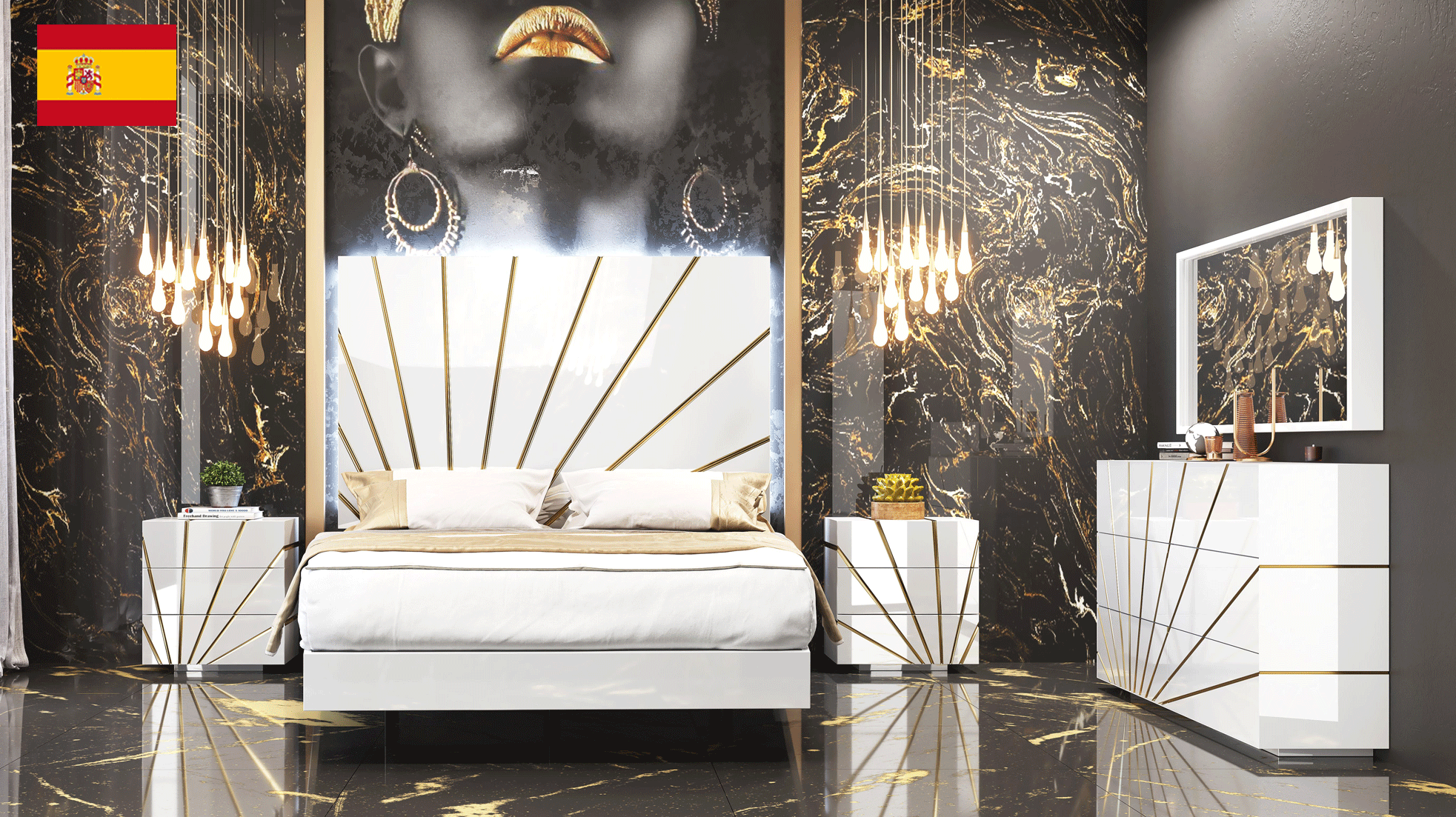 The Oro White Bedroom Comp 2 is a breathtaking modern collection from the Franco Spain by ESF line, meticulously crafted in Spain to reflect premium European craftsmanship. This ensemble transforms any space into a sanctuary of modern luxury, featuring a crisp white finish with a matte Carcass 120 and high-gloss 220/260 front panels. The design is unified by elegant gold accent detailing and clean geometric lines that provide a bold, designer-inspired presence.