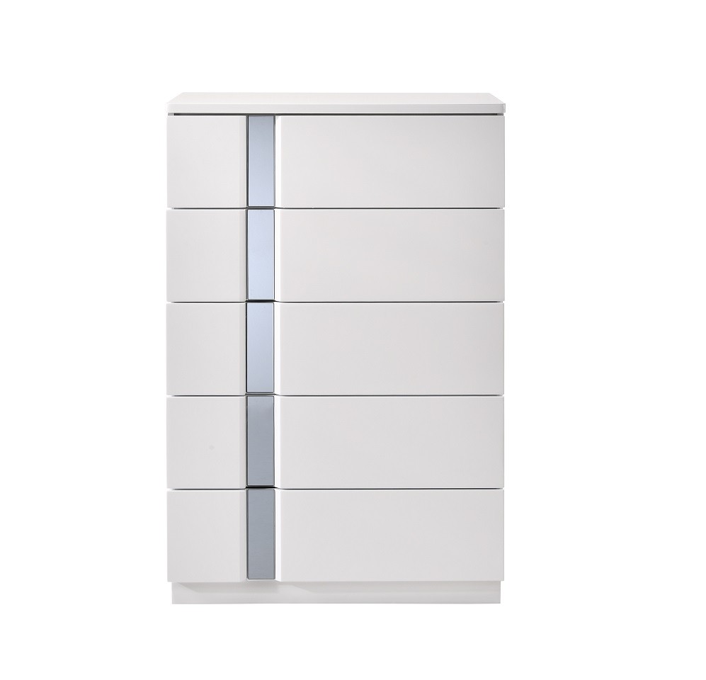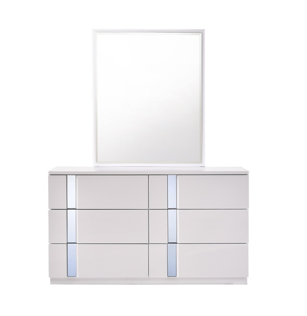 Detail oriented White Lacquer on Chrome. The Palermo Bedroom adds a bold contemporary vibe to your sleep space. White Lacquer with Mirror Accents.Featuring clean horizontal lines and lighted headboard provide a modern look that  makes you feel right at home.