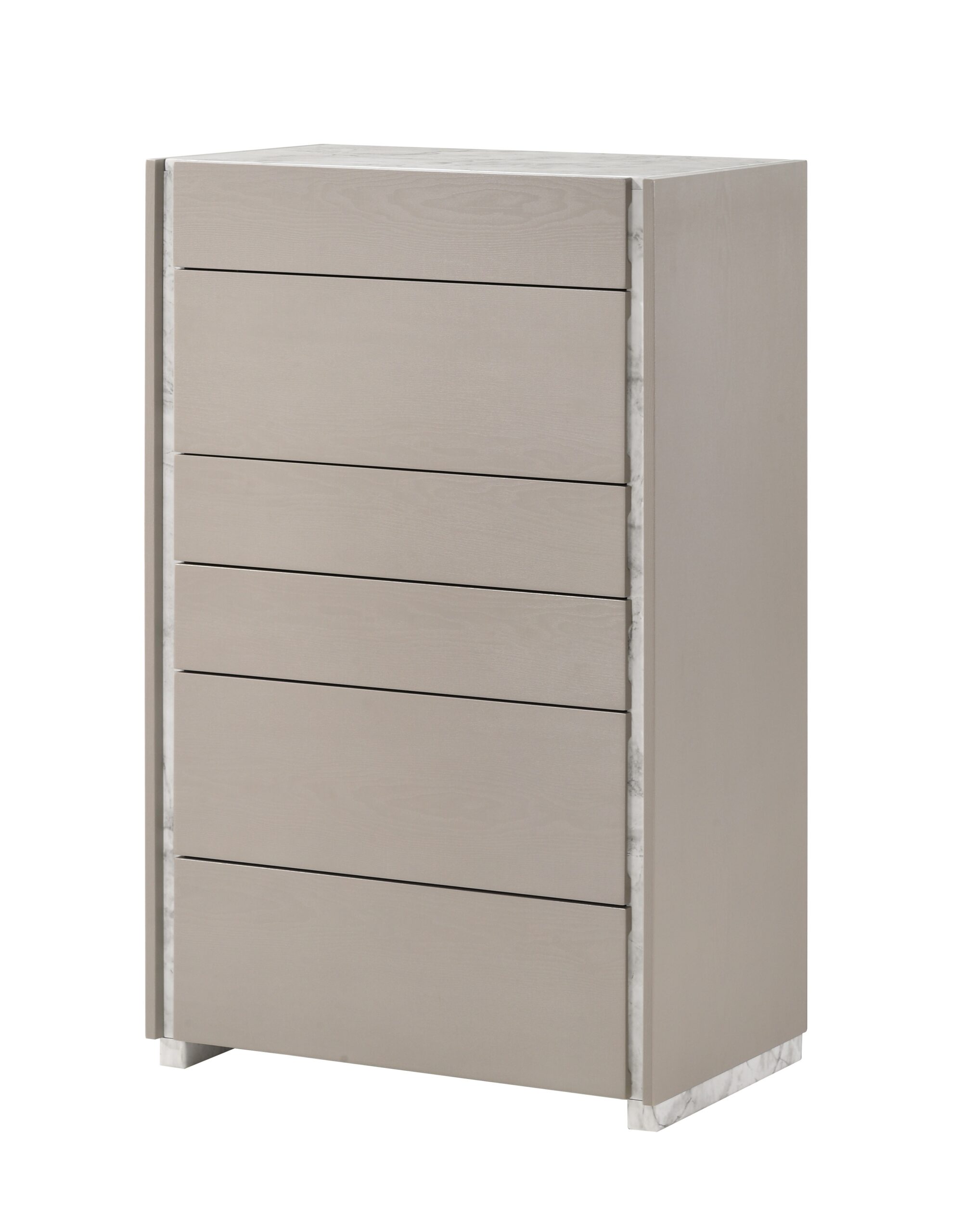 Introducing the Pearl Bedroom Set from J&M Furniture offers a sleek, contemporary design with its sophisticated matte grey finish. The case goods are highlighted with luxurious matte white marble veneer tops featuring elegant grey veining for a cohesive, modern aesthetic. The bed includes a built-in LED light for added ambiance, making it both stylish and functional. Transform your space with the Pearl Bedroom Set, where minimalism meets elegance.