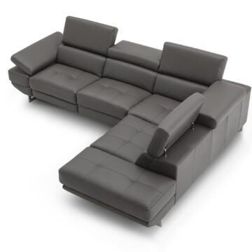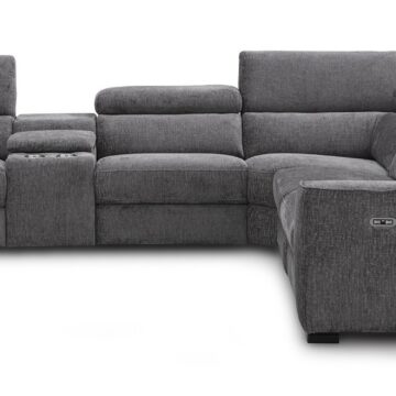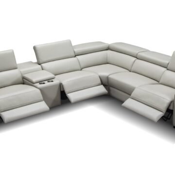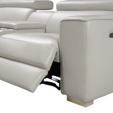 Visually Clean Lines and spacious seats set the Picasso apart from the standard. This iconic sectional is fully modular allowing you to have many options to configure it to your room’s need. The Picasso Motion Sectional features 3 powered recliners and headrests for maximum comfort. Crafted from Premium Top grain Leather all around, this 6 piece sectional features a convenient console with two cup holders plus storage, 2 end recliners, 1 arm less recliner, 1 stationary arm less & 1 plush corner cushion for ultra comfort and a solid oak frame to ensure long lasting use. Available in dark grey & silver grey & caramel.