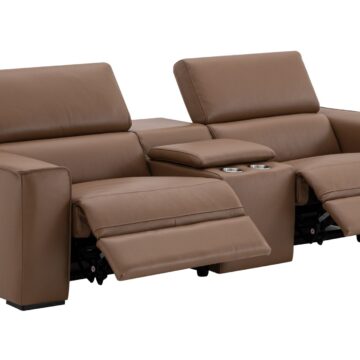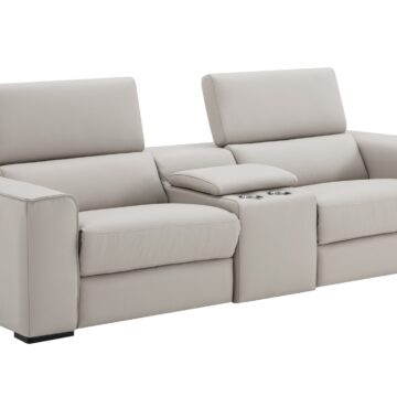 Visually Clean Lines and spacious seats set the Picasso apart from the standard. The Picasso is crafted in Premium Top grain Leather all around and features power recliners for your convenience and comfort-ability. The sofa includes 2 power end recliners and one stationary armless chair. The love seat is available in two versions, with or with out a console and 2 power end recliners. Available in silver grey, dark grey, caramel & blue grey.