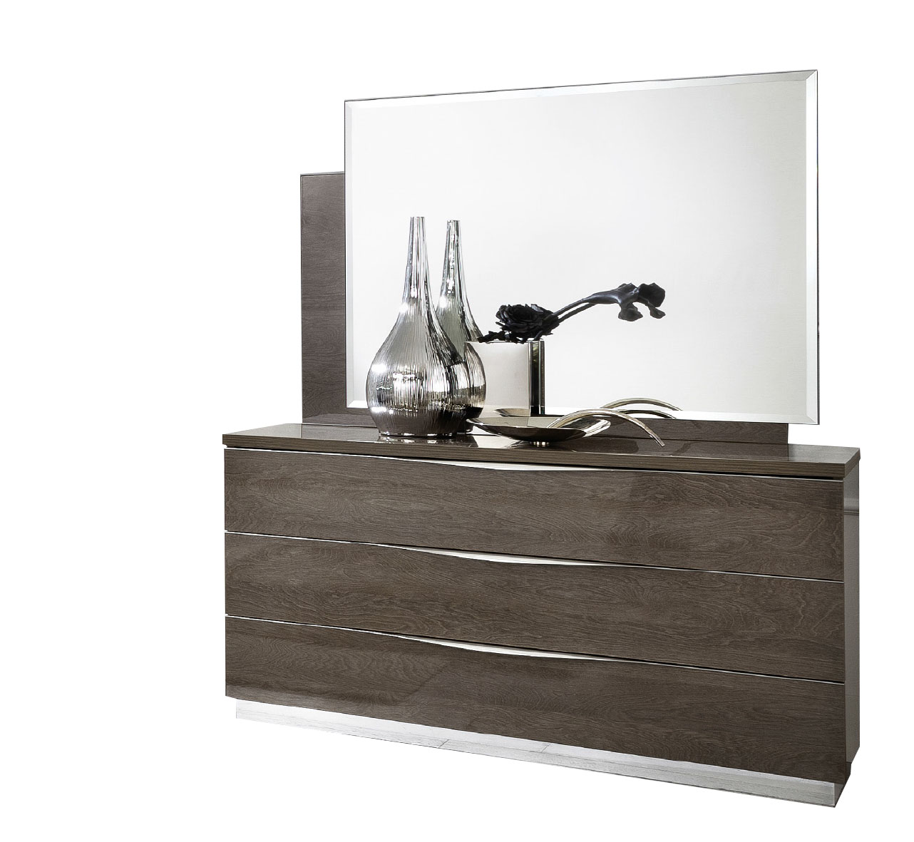 The Platinum LEGNO Dressers & Mirror SILVER BIRCH by Camelgroup Italy by ESF is a premium Italian-crafted bedroom set that combines a sleek wood-grain finish with modern utility. This sophisticated duo features handle-free drawers and a spacious rectangular mirror, perfect for organizing essentials while adding depth to contemporary master suites. Made from high-quality wood veneer and MDF, it offers a refined silhouette and lasting durability for any stylish home.