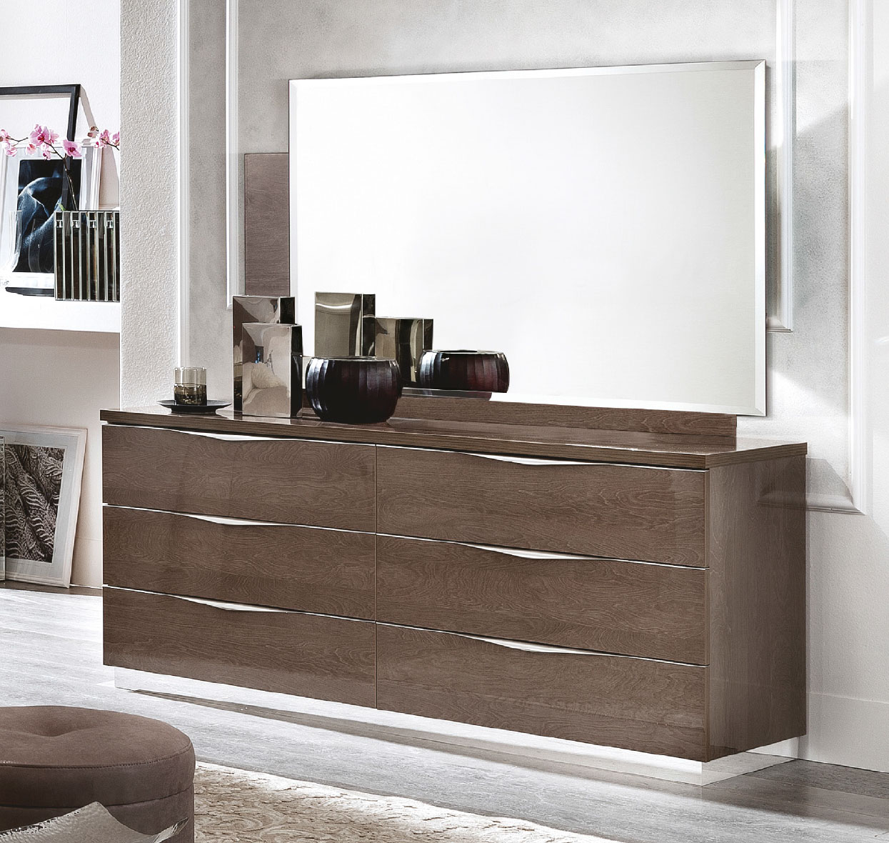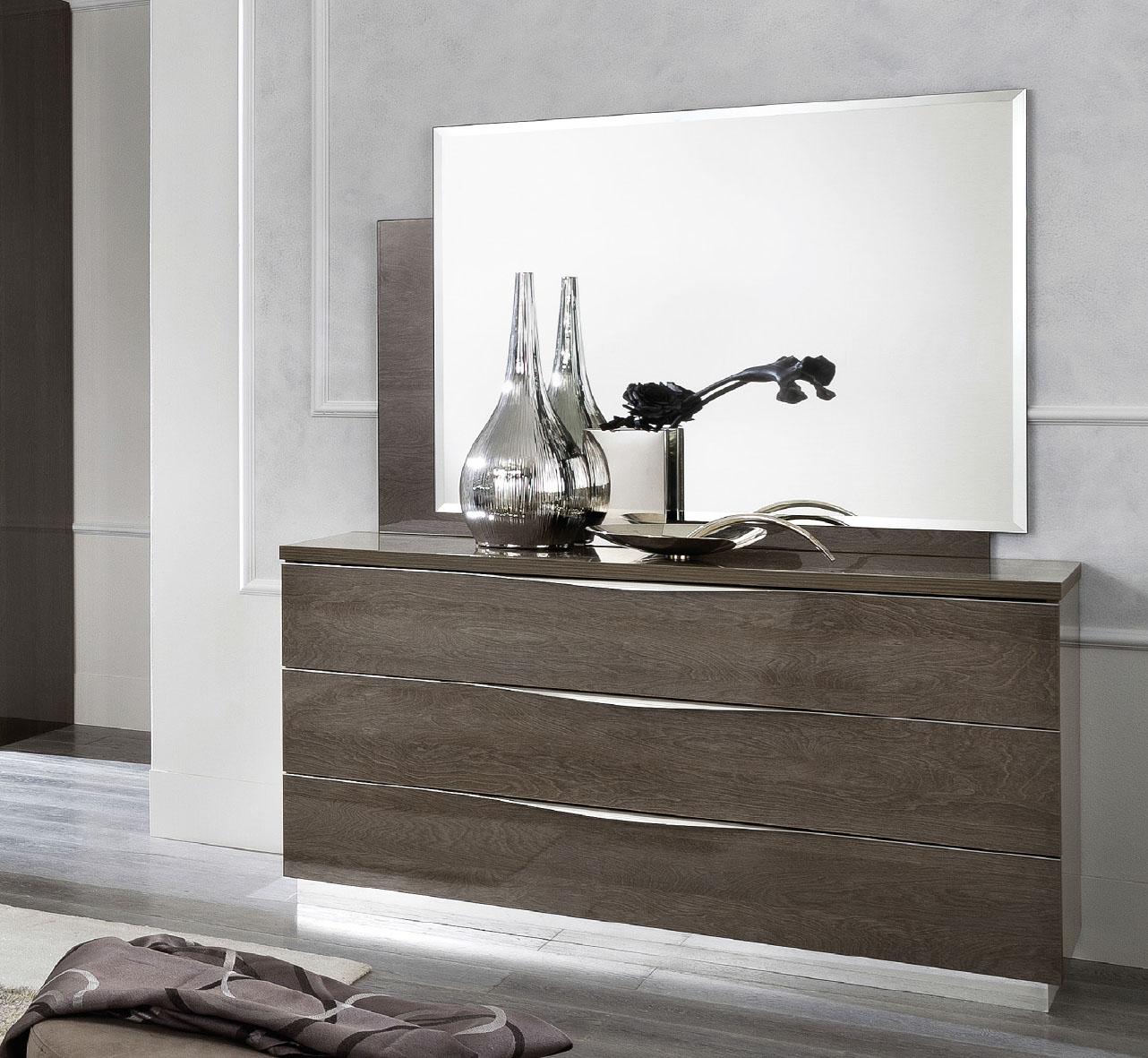 The Platinum QS DROP Bedroom SILVER BIRCH represents the pinnacle of Italian artistry, brought to you by Camelgroup Italy by ESF. This exquisite set from our Bedroom Furniture > Modern Bedrooms QS and KS collection blends sleek modern lines with timeless Art Deco details, creating a sanctuary of high-end style. Meticulously crafted in Italy using premium wood veneer and MDF, each piece features a high-gloss Silver Birch finish. This lustrous polyester lacquer is treated with an anti-yellowing UV drying process to ensure its brilliant sheen endures for years to come.