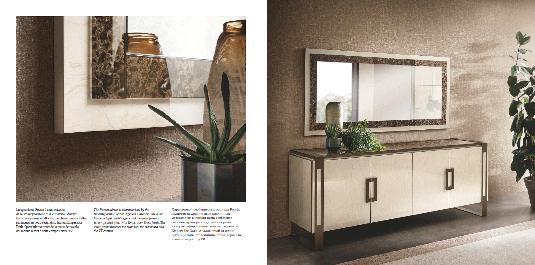 The Poesia Dark Grain Dining room Additional items collection, bearing the signature of the prestigious Adora brand, offers a refined selection of complements designed to transform your dining space. Part of the Arredoclassic Italy by ESF line, these pieces serve as a metaphor for Made-in-Italy beauty, blending minimalist details with sophisticated materials. Each element is crafted to provide a fusion of refined character and timeless elegance, ensuring your home reflects a high-end European aesthetic.