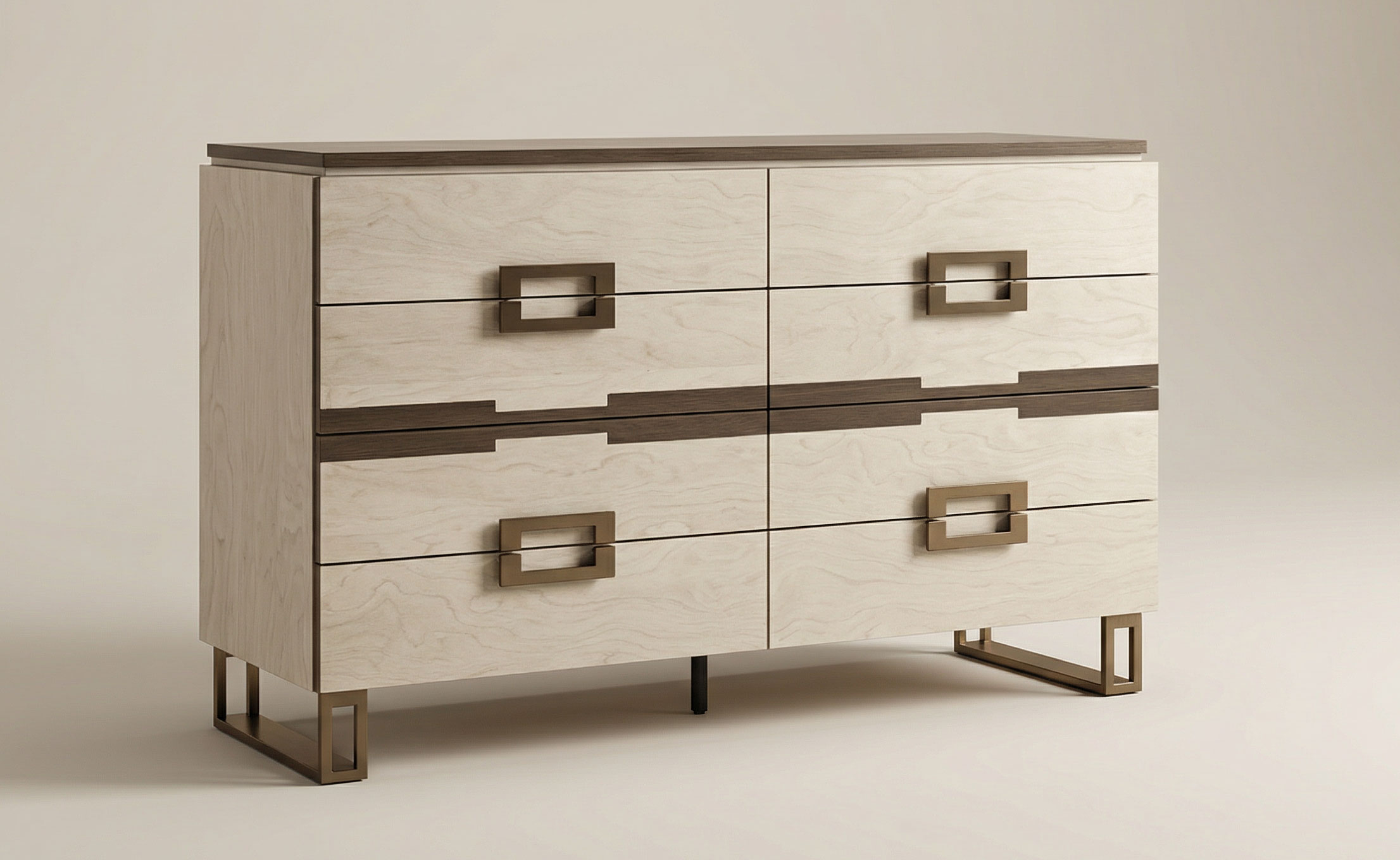Designed with both beauty and utility in mind, this piece offers three spacious drawers to keep your essentials organized. The modern aesthetic is further enhanced by sleek bronze metallic accents and geometric metal legs, which provide a striking contrast to the soft ivory tones. Whether you are looking for dressers and chests that make a statement or simply need a reliable storage solution, the Poesia collection delivers unparalleled style and quality. Elevate your interior design with this stunning blend of contemporary lines and classic Italian artistry.