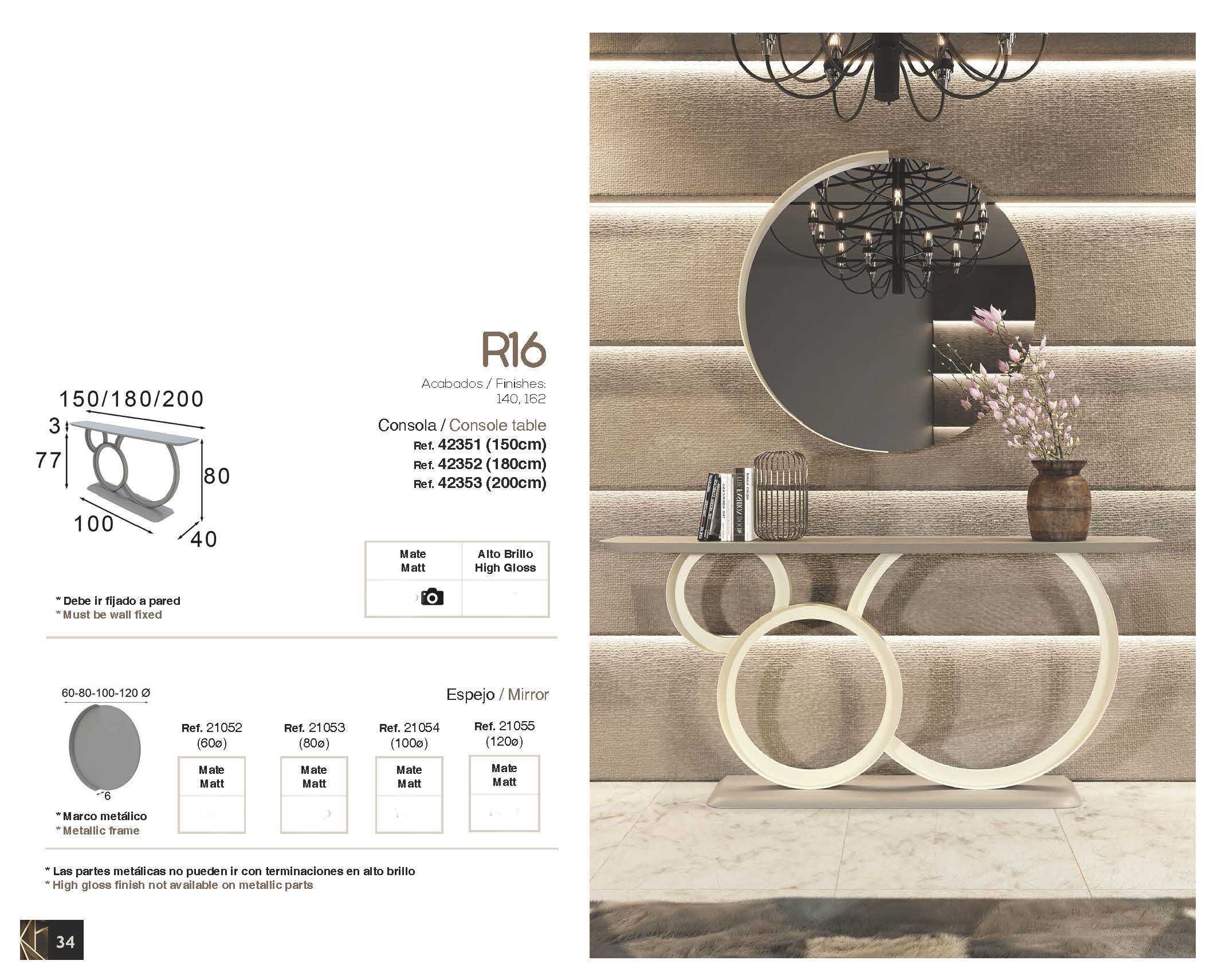 To complete your home’s transformation, you can effortlessly combine this console table with any of the mirrors from this same collection, creating a harmonious and sophisticated look. The high-gloss surfaces reflect light beautifully, brightening your space and showcasing the meticulous attention to detail that ESF is known for. Experience the enduring quality and refined style of this exceptional Spanish-made module, designed to harmonize with your most elegant decor elements.