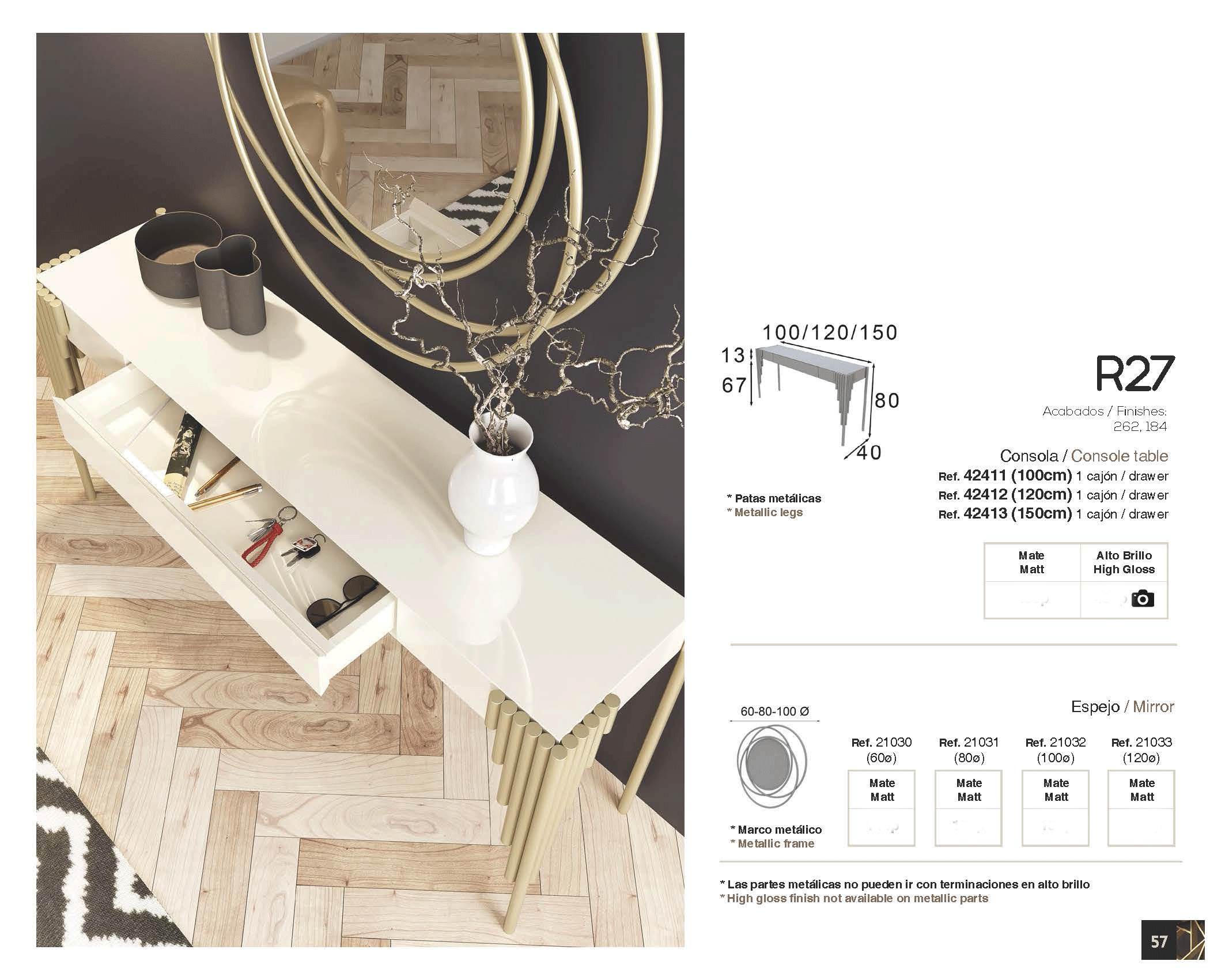 Functionality meets high-end design in this wall-mounted masterpiece. To ensure stability and a seamless aesthetic, the unit must be wall fixed, creating a floating effect that maximizes floor space. This console is not just a piece of furniture but a versatile module that harmonizes perfectly with coordinating mirrors from the same collection. Whether you are showcasing a floral arrangement or a curated selection of art, the R27 Console Table provides a sophisticated stage for your home decor.