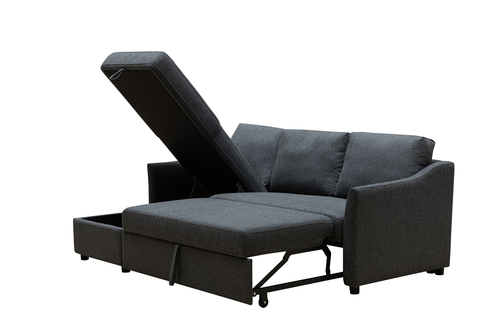 The Rino Sectional w/storage and bed is a masterclass in versatile design, merging clean-lined aesthetics with the practical needs of a modern home. As a standout piece in our Sleepers Sofas Loveseats and Chairs collection, this sectional is meticulously crafted by Klaussner Living. It features a low-profile silhouette and wide armrests that define its contemporary character, while the refined dark fabric upholstery and neutral tones ensure it integrates effortlessly into any living room.