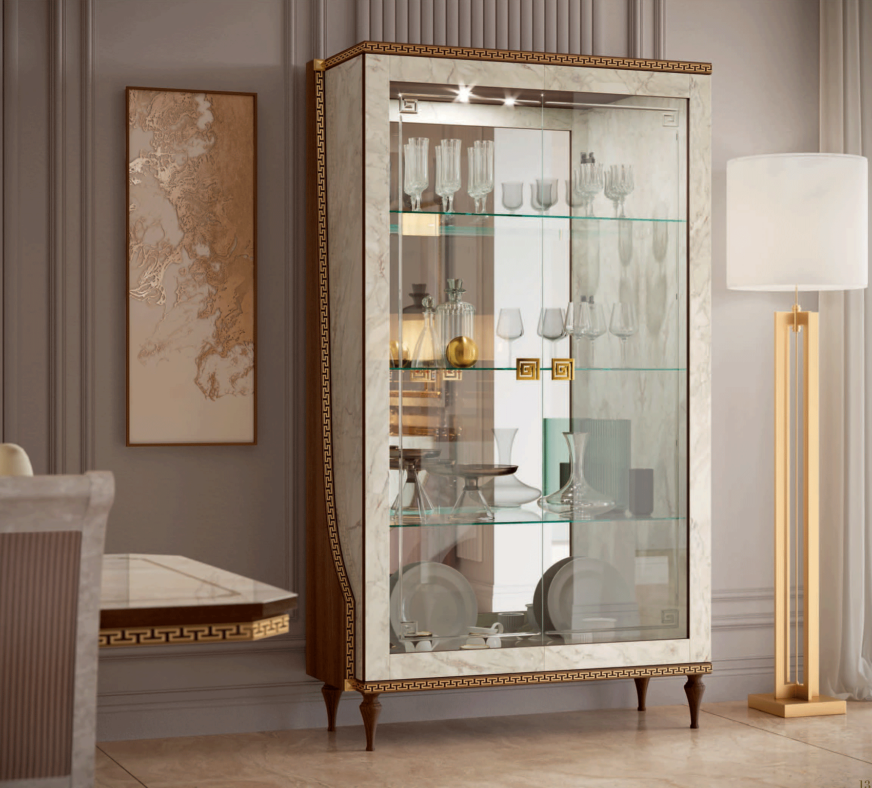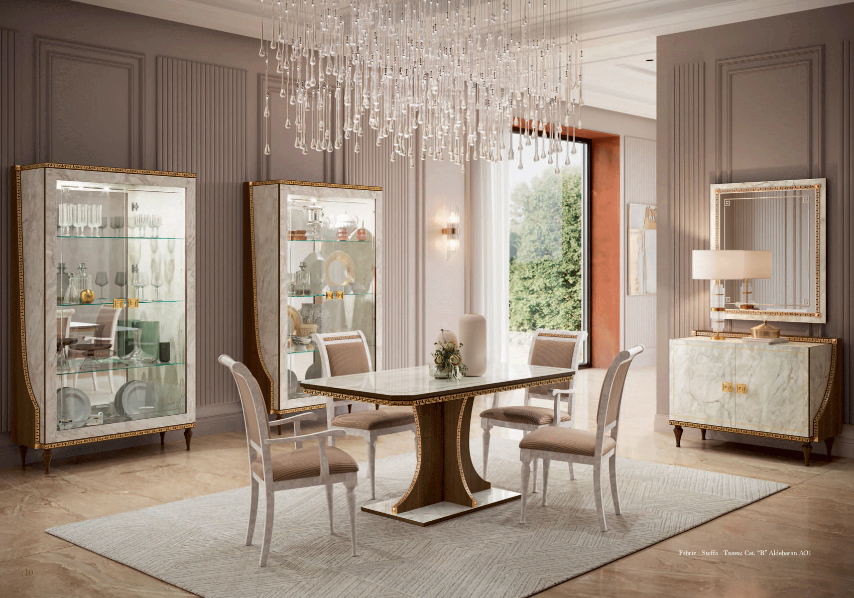 Crafted with high-quality Special Order Materials by Arredoclassic Italy, the collection is defined by its exquisite details. Decorative frames in a shimmering gold finish provide a regal touch, highlighting the superior craftsmanship of the Arredoclassic Italy by ESF line. Whether you are hosting a formal dinner or enjoying a quiet family meal, these pieces offer the perfect blend of Italian artistry and functional convenience.