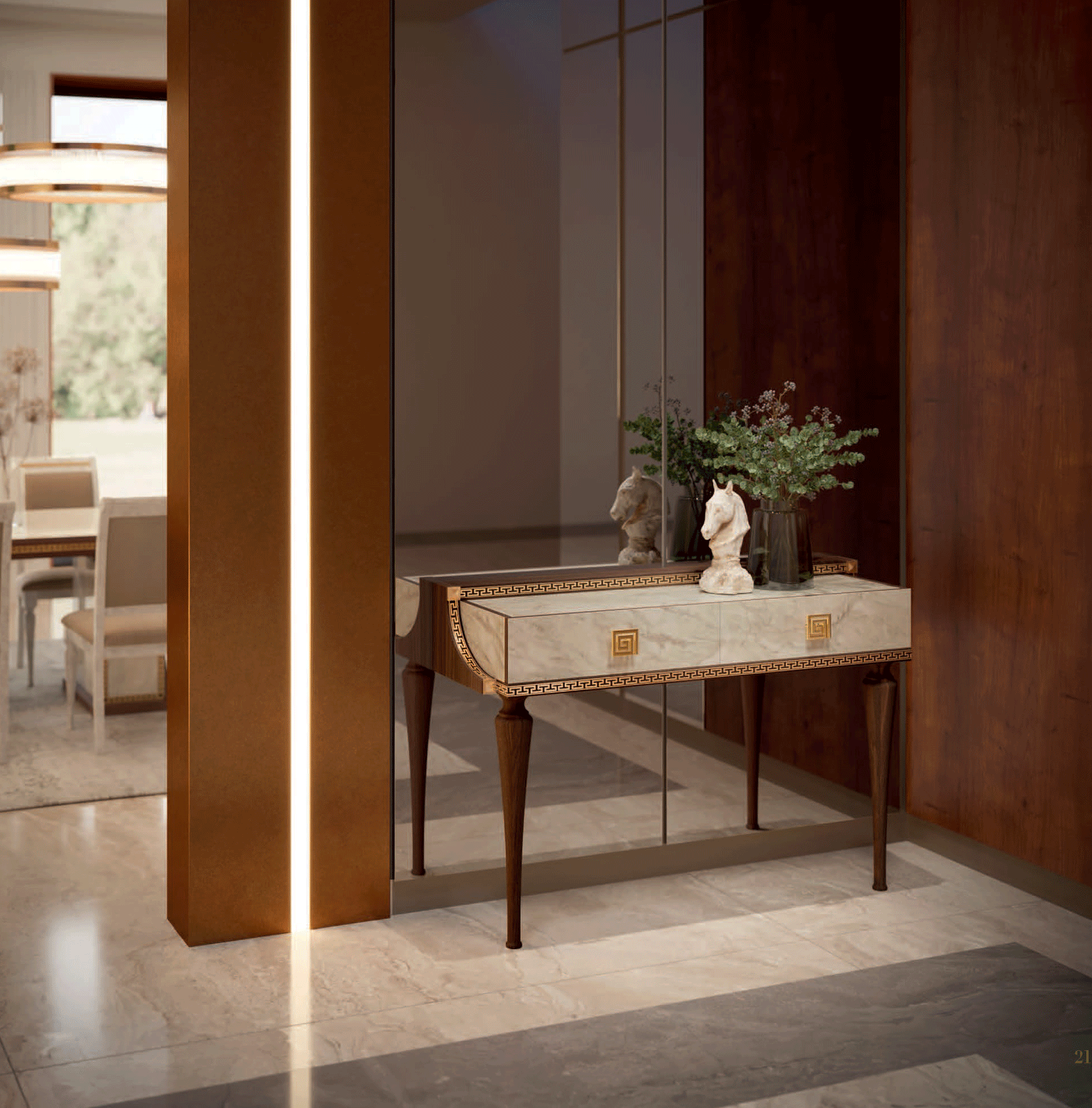 These tables from the Romantica collection are engineered for both beauty and utility. Available in several sizes to accommodate various living needs, they feature a smooth sliding system and extensions stored internally for effortless expansion. This thoughtful design allows you to host large gatherings with ease, providing ample seating without compromising the room’s aesthetic.
