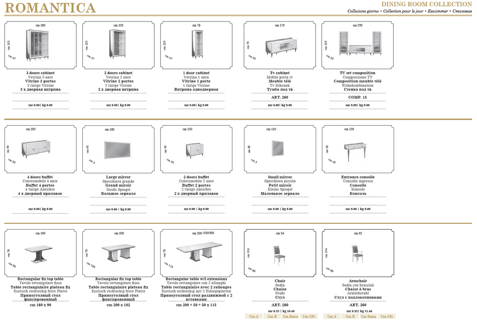 The Romantica Dining Room Additional items collection brings a touch of refined and timeless elegance to your home. Part of our Classic Dining Room Sets, this ensemble captures the magic of traditional style while infusing it with a unique sense of originality. Each piece is meticulously designed to dress your living area in sophisticated luxury, ensuring your home remains a pure statement of style for years to come.