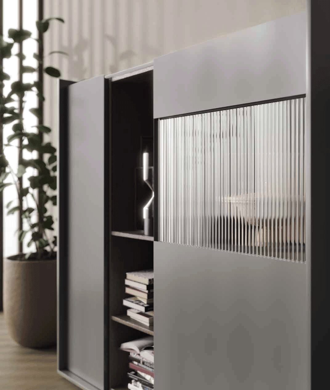 The RP001 showcases a stunning interplay of volumes and textures, featuring a refined Gris Londra Mate and Roble Carbon finish. This combination of “London Grey Matte” and “Charcoal Oak” creates a contemporary aesthetic that is both bold and timeless. Crafted by Garcia Sabate Spain by ESF, the unit is constructed from premium materials including wood veneer and high-quality MDF, ensuring a durable and luxurious addition to your home.