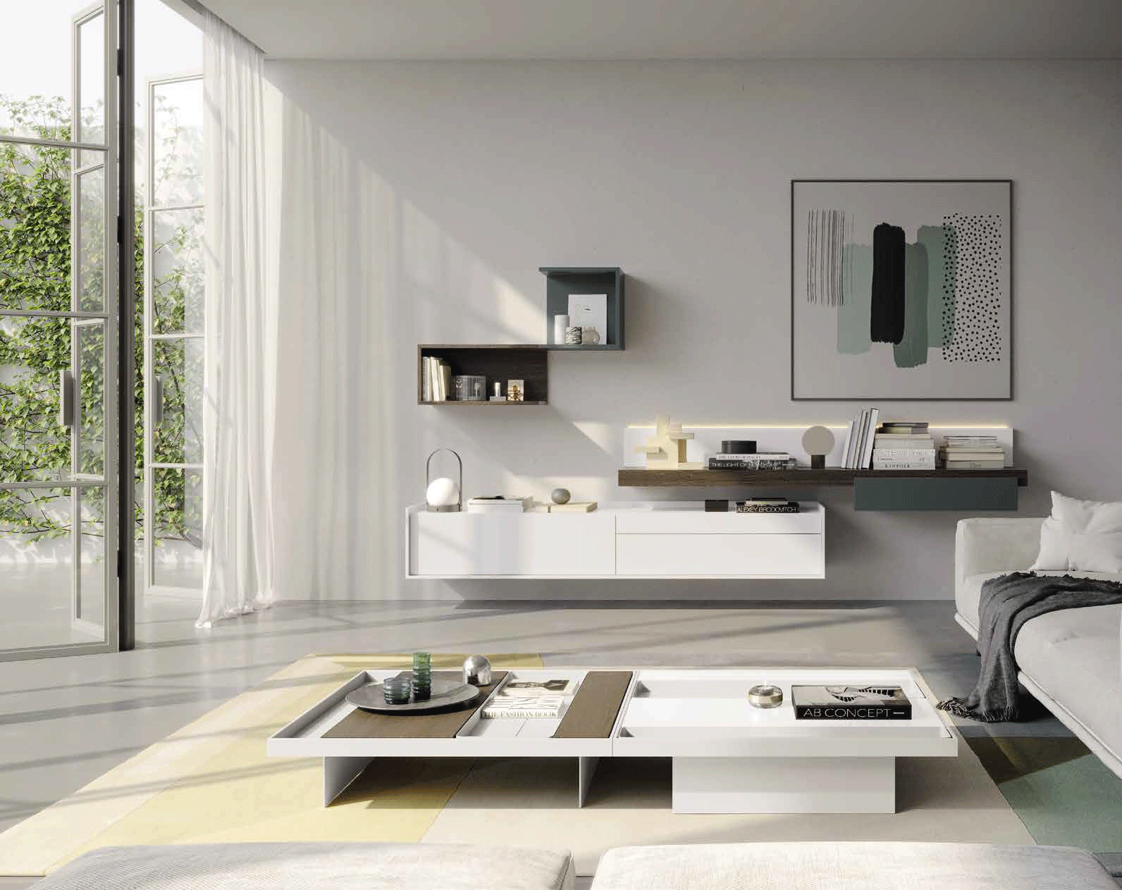 Elevate your living space with the RP002, a centerpiece of modern sophistication from the Garcia Sabate REPLAY collection. Expertly crafted in Spain, this furniture program is a testament to the seamless fusion of avant-garde design and practical functionality. Its striking 300 cm length makes a bold statement, offering a voluminous presence that defines the room. The exquisite combination of Blanco Mate, Roble Carbón, and Verde Comodoro Mate finishes creates a rich, textured aesthetic that reflects the latest trends in high-end interior decor.