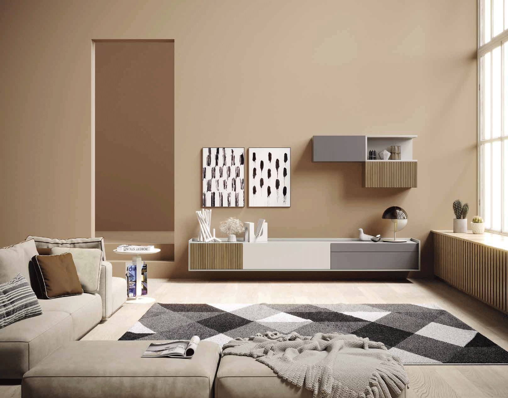 This masterfully constructed unit features a refined palette of finishes, including Piedra Mate, Gris Londra Mate, and Roble Tostado. The combination of wood veneer, MDF, and special order materials ensures a robust build that does not sacrifice style for durability. Measuring 263 cm in length, the RP007 provides a generous and commanding presence, making it an ideal choice for those seeking to elevate their interior decor with a touch of European flair.