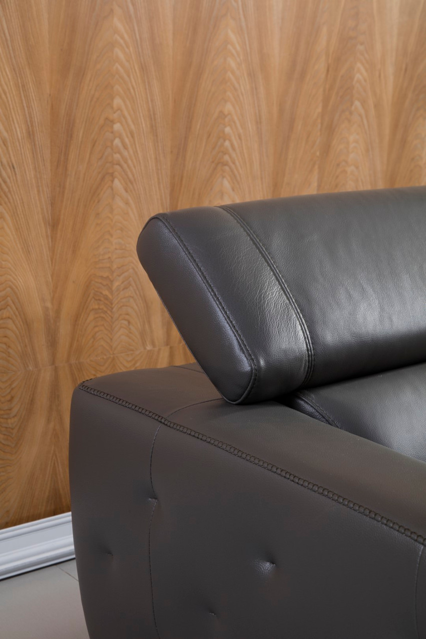 The S266 leather sectional is at the intersection of elegant European aesthetic and quality. It incorporates cleans lines and modern motion technology to create a beautiful frame and to offer personalized resting comfort. Wrapped with sumptuously thick leather on the seating area, employing double-stitching tailoring, the S266 Sectional offers unmatched style, comfort and quality. Its seating and back are filled with high resiliency foam and wrapped with tufted leather. Its frame is built with kiln-dried solid wood and reinforced with corner blocks to ensure years of comfortable seating.