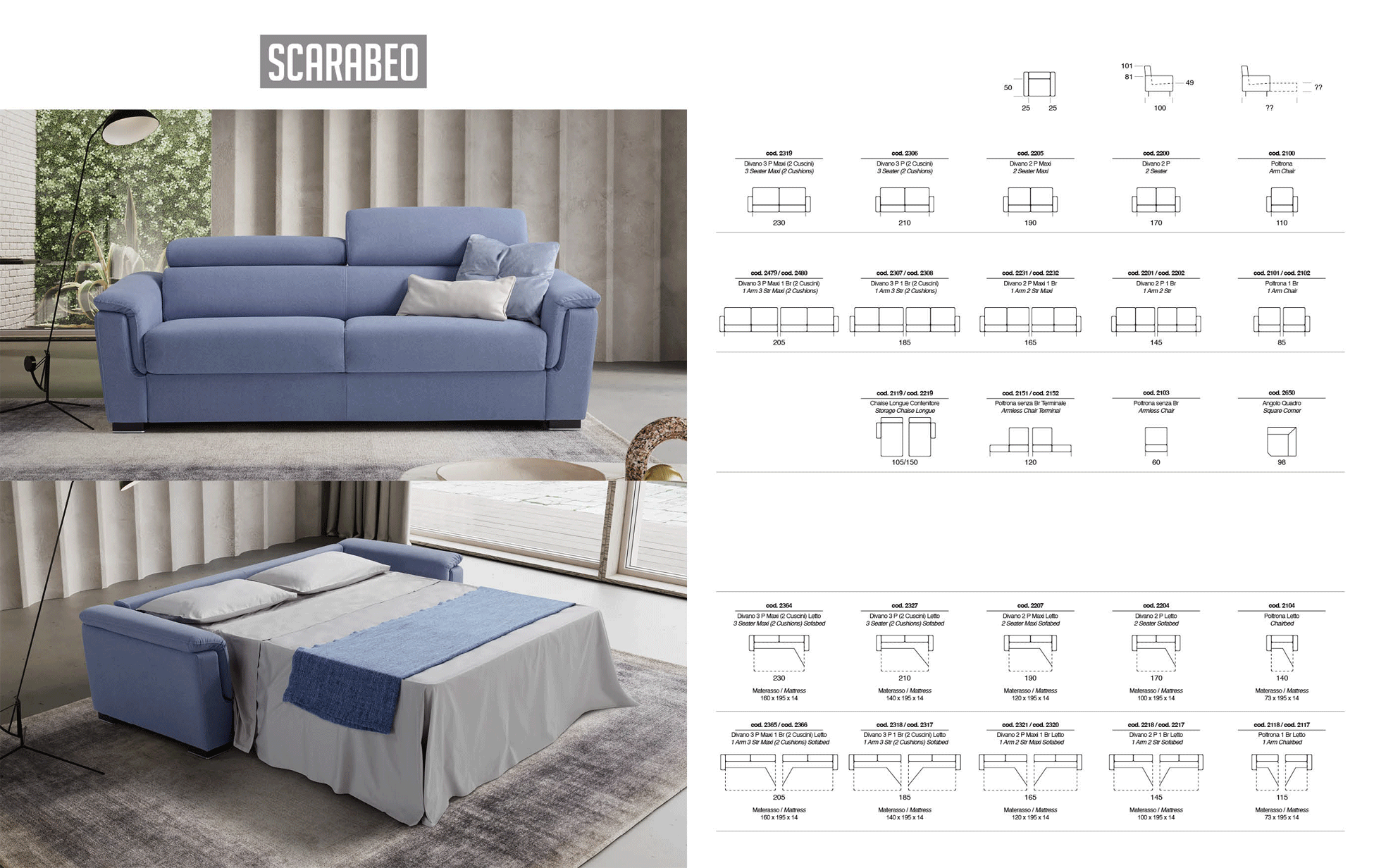 Redefining the essence of modern living, the Scarabeo collection by New Trend Concepts Italy offers a multi-faceted experience that caters to your relaxation and design aspirations. This sophisticated Scarabeo sleeper sofa serves as a harmonious blend of style and versatility, transcending the limits of ordinary furniture. Expertly crafted in Italy, the piece features high-quality fabric and special order materials, ensuring a luxurious feel and lasting durability for your home.