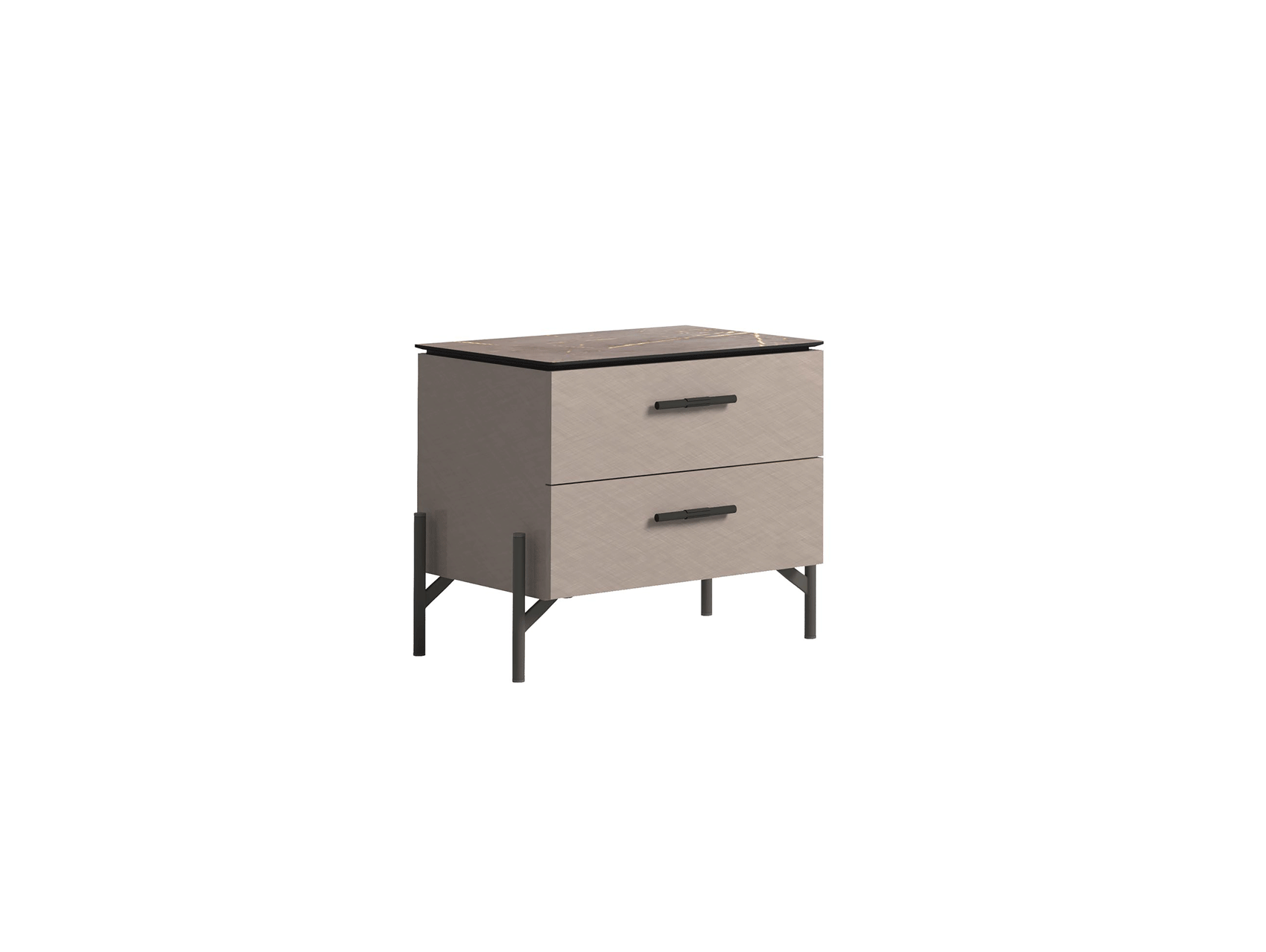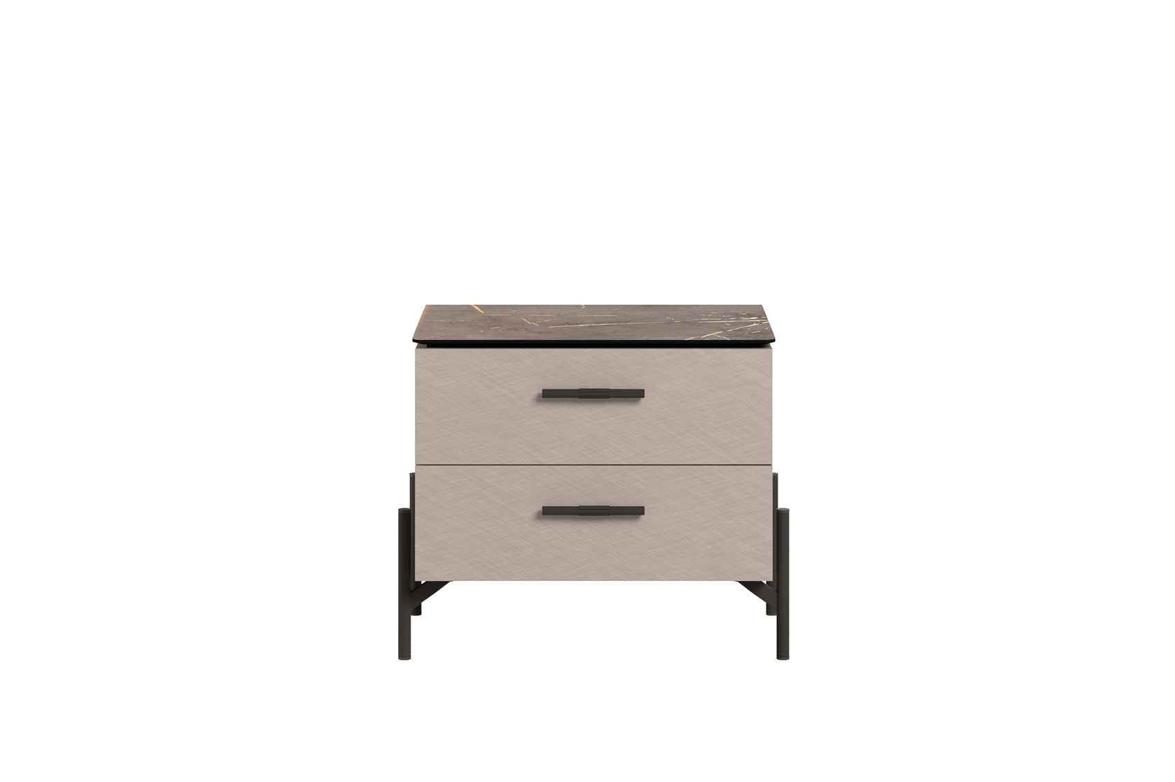 The Silvia Nightstand, a masterpiece by Status Italy by ESF, brings the essence of Italian craftsmanship directly into your home. This contemporary 2-drawer nightstand is expertly constructed from high-quality wood veneer and MDF, ensuring both durability and a premium feel. Its sophisticated rope beige finish radiates a soft, refined glow, while the striking dark top surface provides a luxurious contrast that serves as a focal point for your bedside decor. Slim, minimalist metal handles complete the aesthetic, offering a clean look that fits perfectly within the modern Bedroom Furniture category.