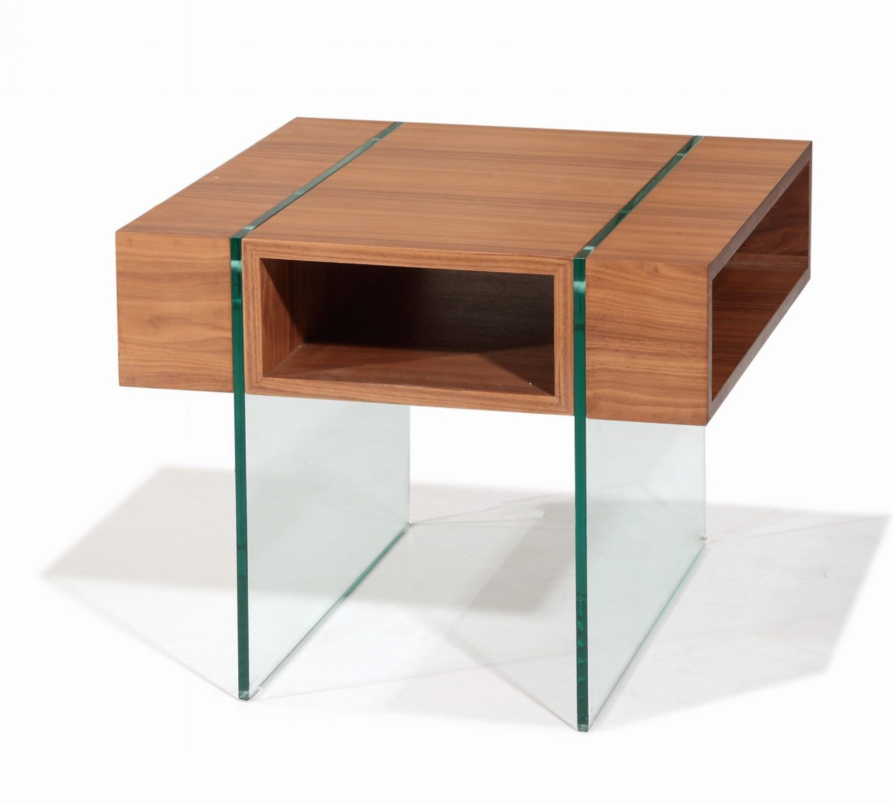 Walnut End Table with Glass Panel Legs 24 x 24 x19